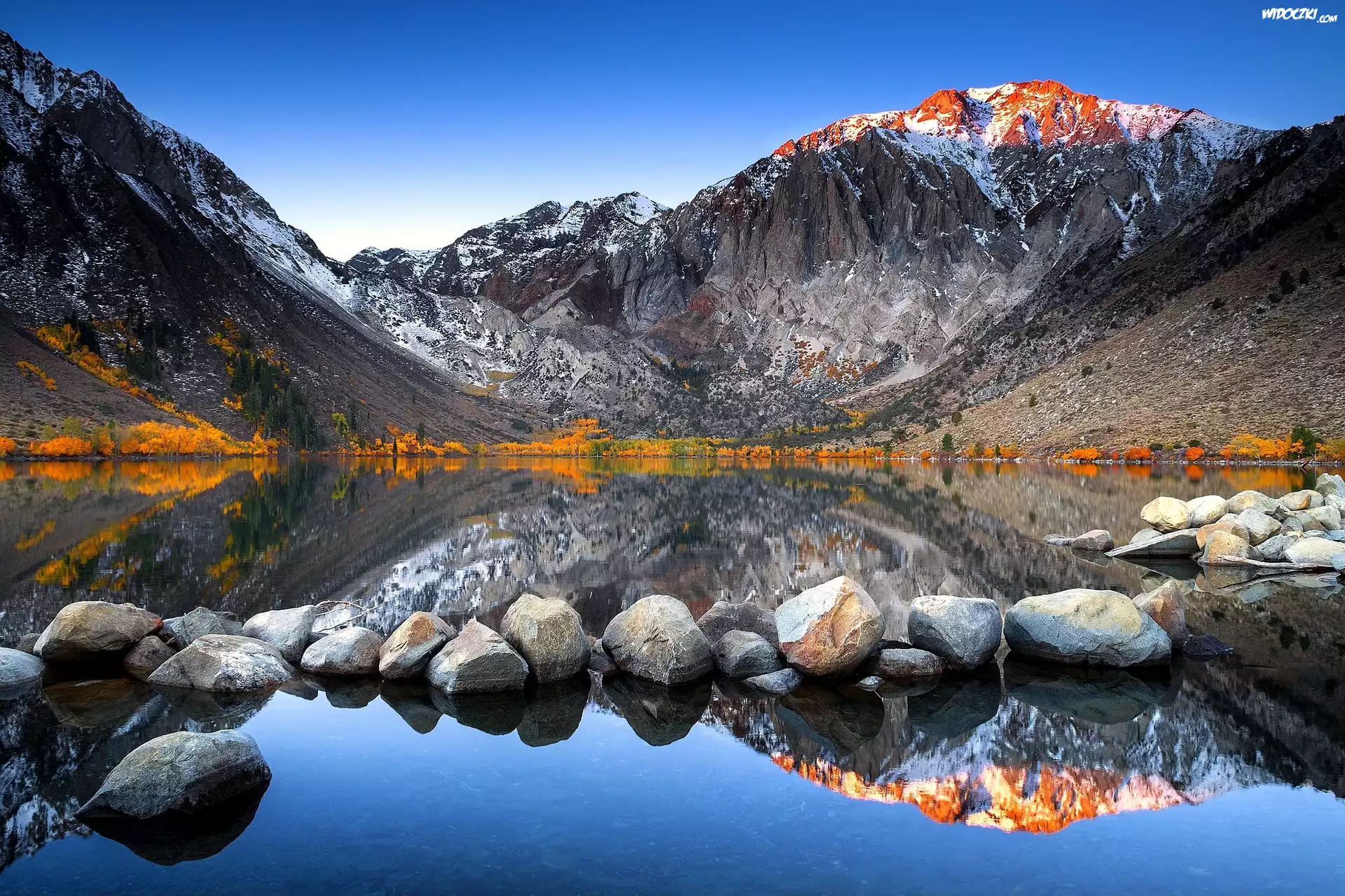 Zdjęcia, Góry, Jezioro, Kamienie, Odbicie