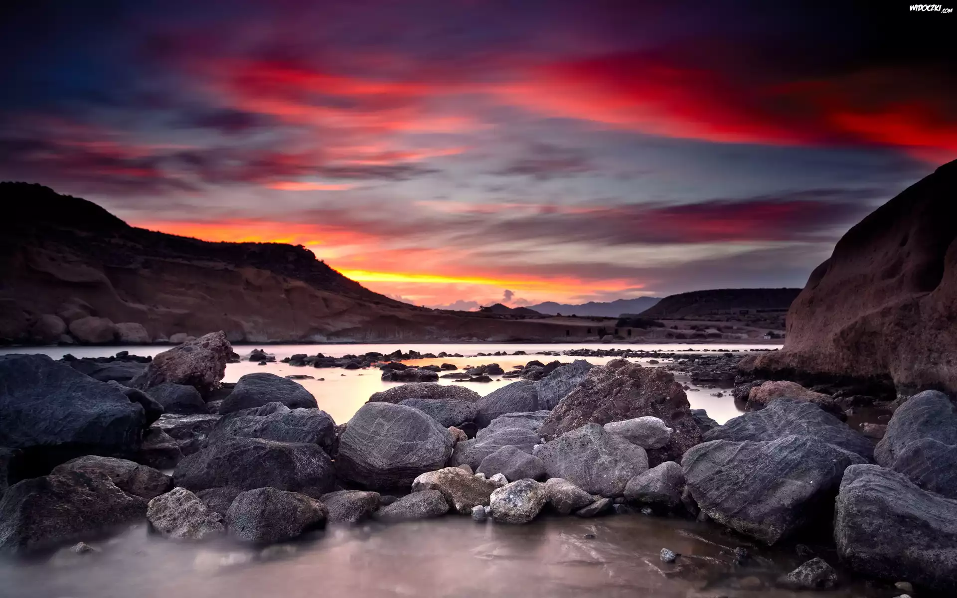 Zdjęcia, Góry, Rzeka, Kamienie, Chmury