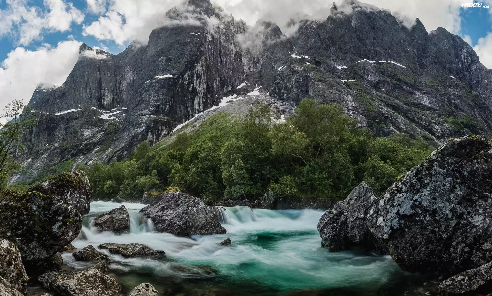 Zdjęcia, Góry, Rzeka, Kamienie, Drzewa