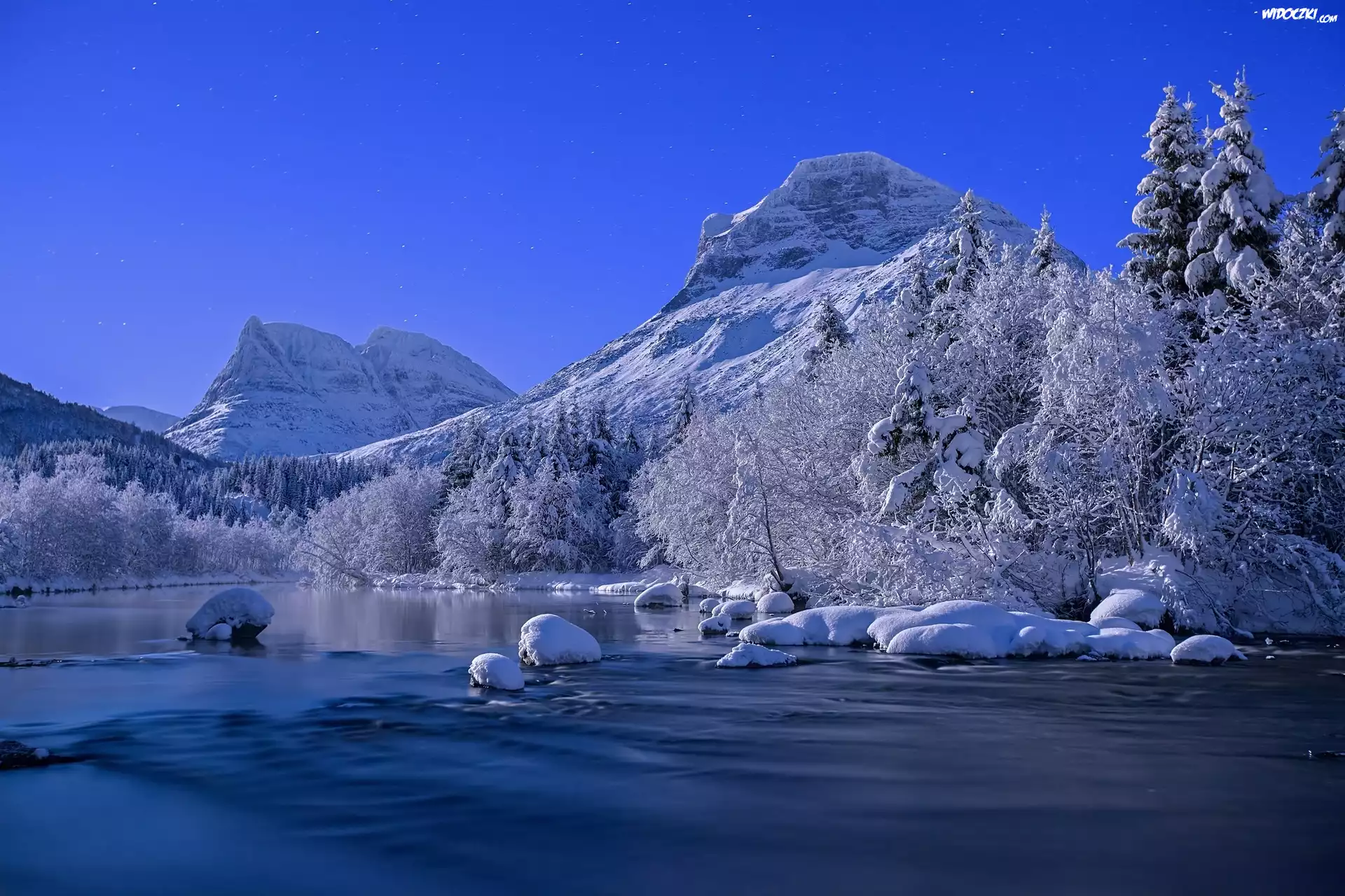 Góry, Rzeka, Kamienie, Zima