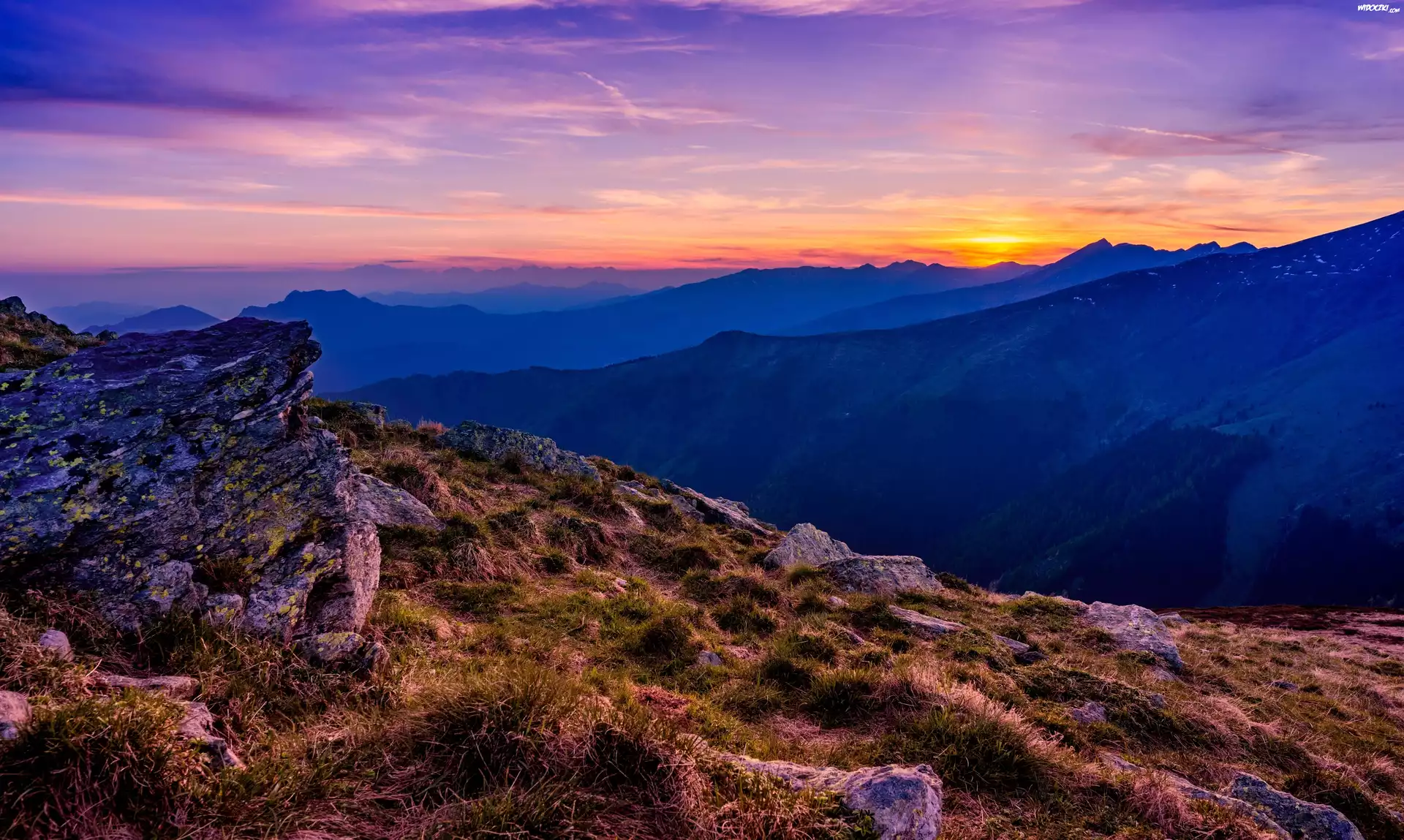 Zdjęcia, Góry, Zachód słońca, Kamienie, Skały