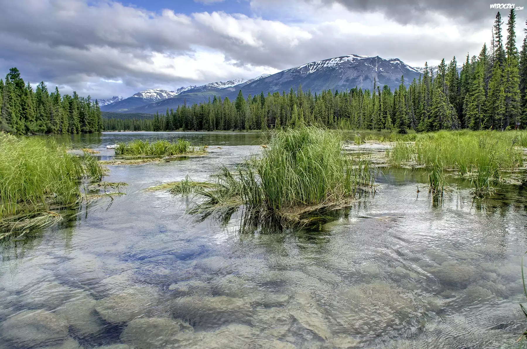 Góry, Rzeka, Kamienie, Lasy, Kępy, Trawa