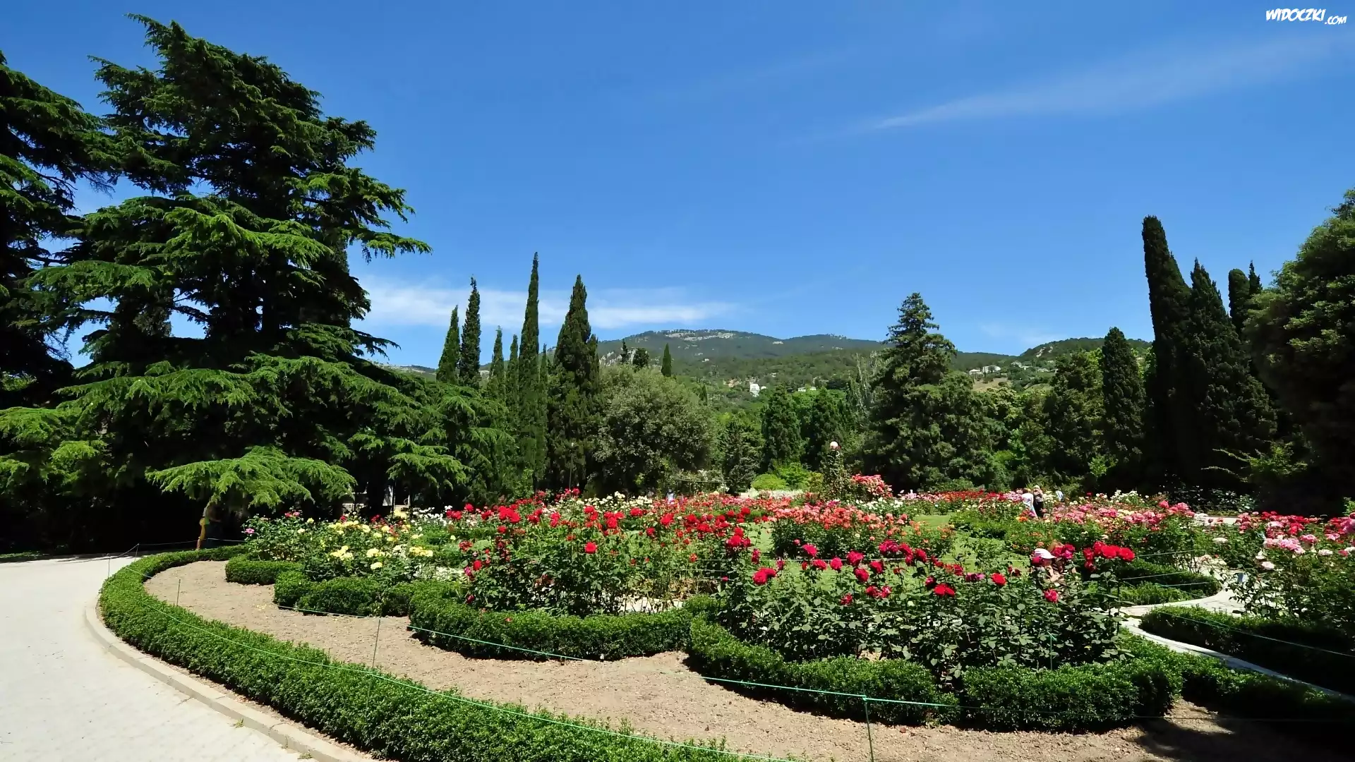 Zdjęcia, Góry, Park, Iglaki, Klomb, Różany