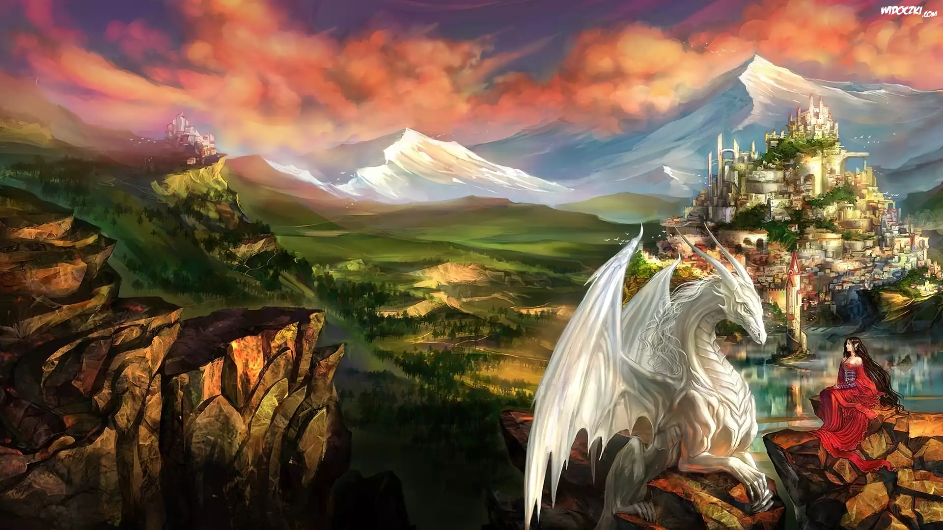 Zdjęcia, Góry, Smok, Kobieta, Zamek