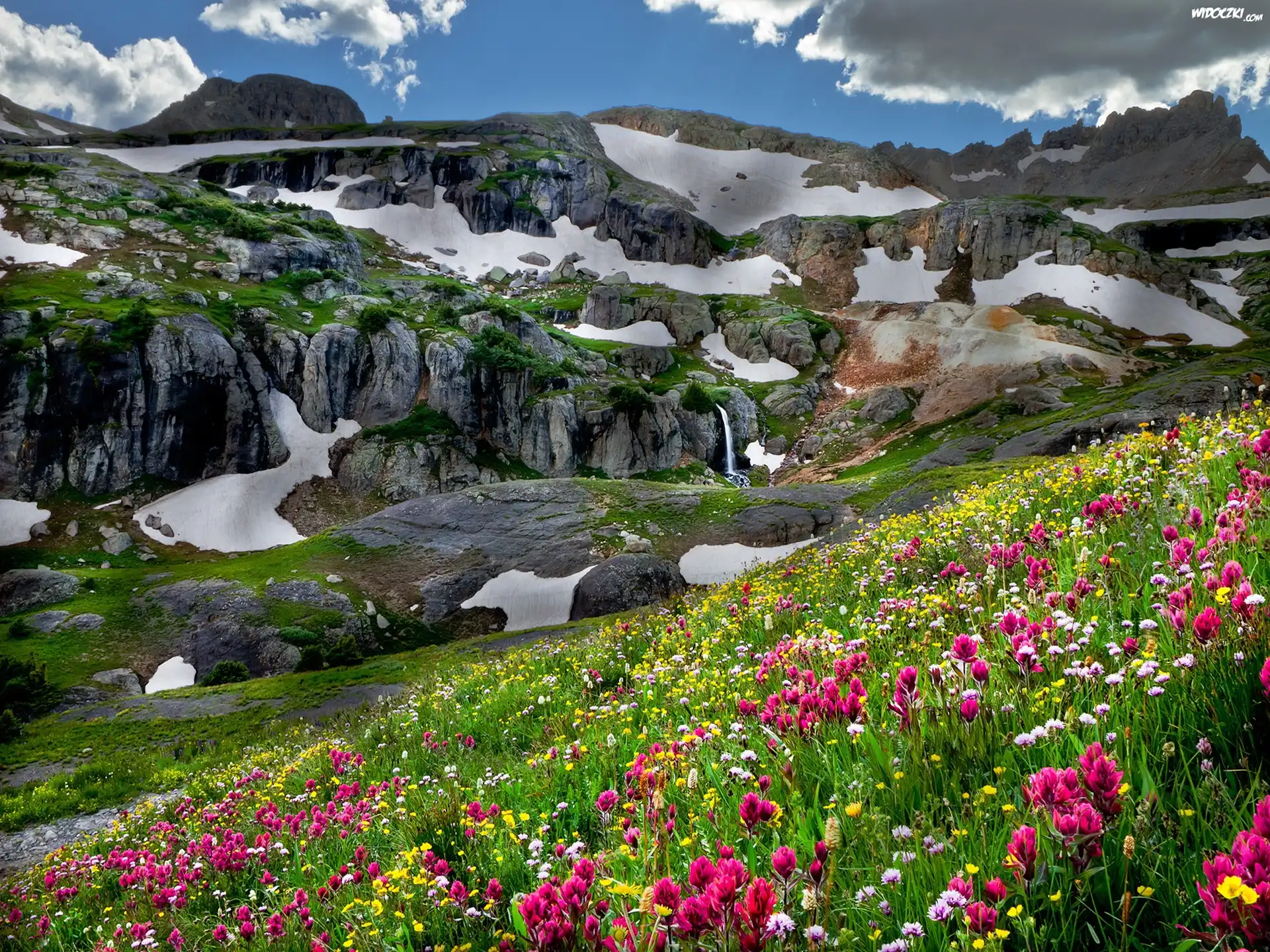 Zdjęcia, Góry, Skały, Łąka, Kolorowe, Kwiaty