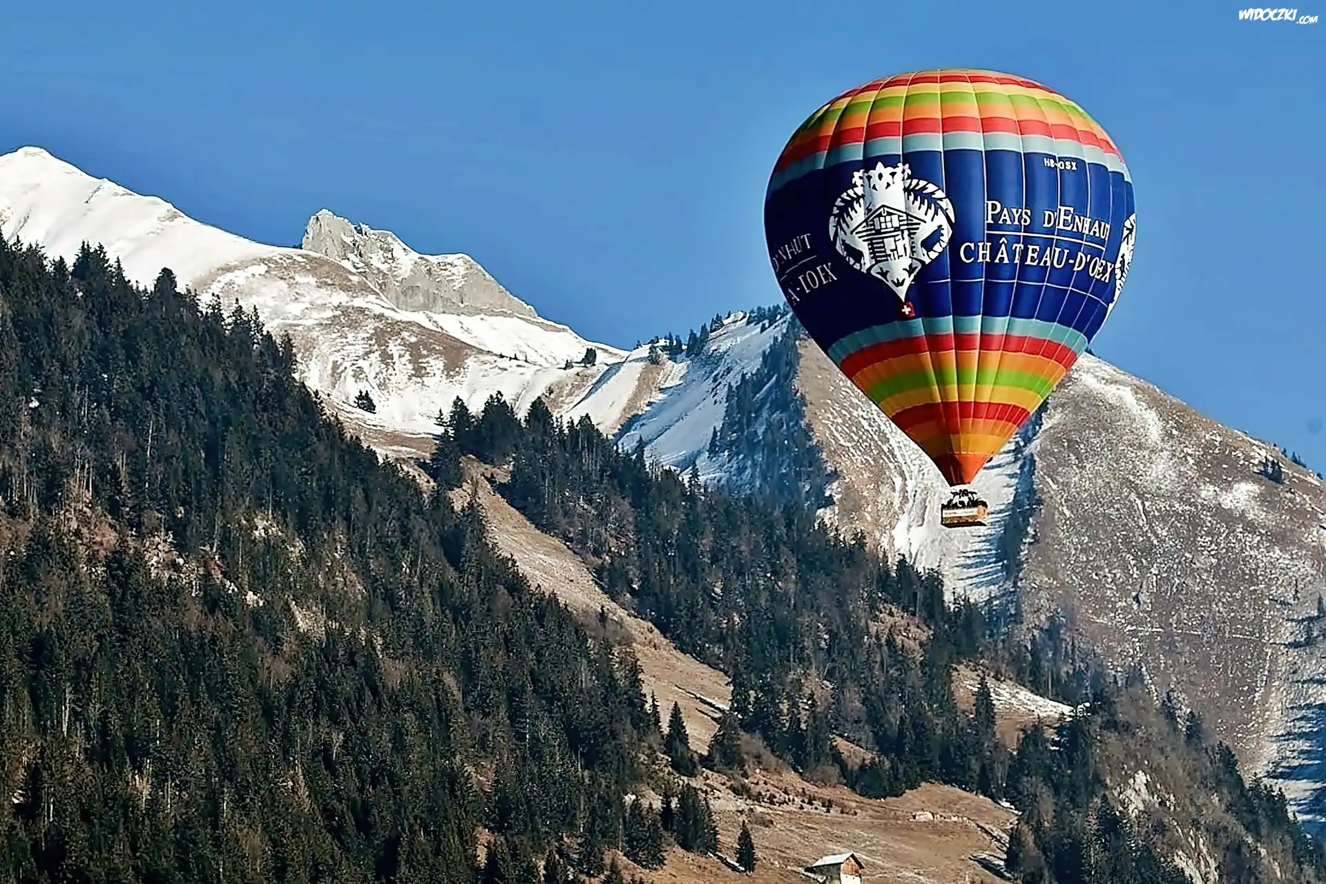 Zdjęcia, Góry, Ośnieżone, Szczyty, Las, Kolorowy, Balon