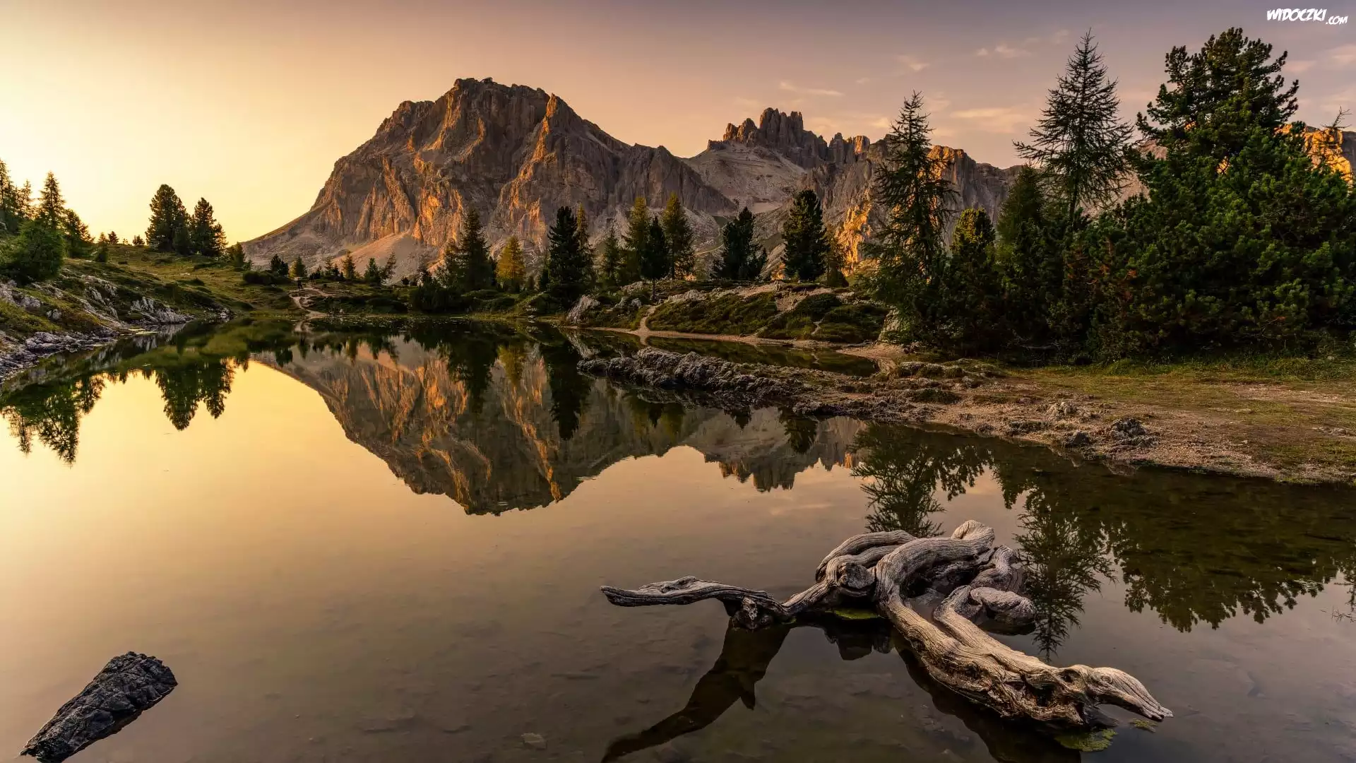 Zdjęcia, Włochy, Góry, Dolomity, Jezioro, Lago Limides, Drzewa, Konar