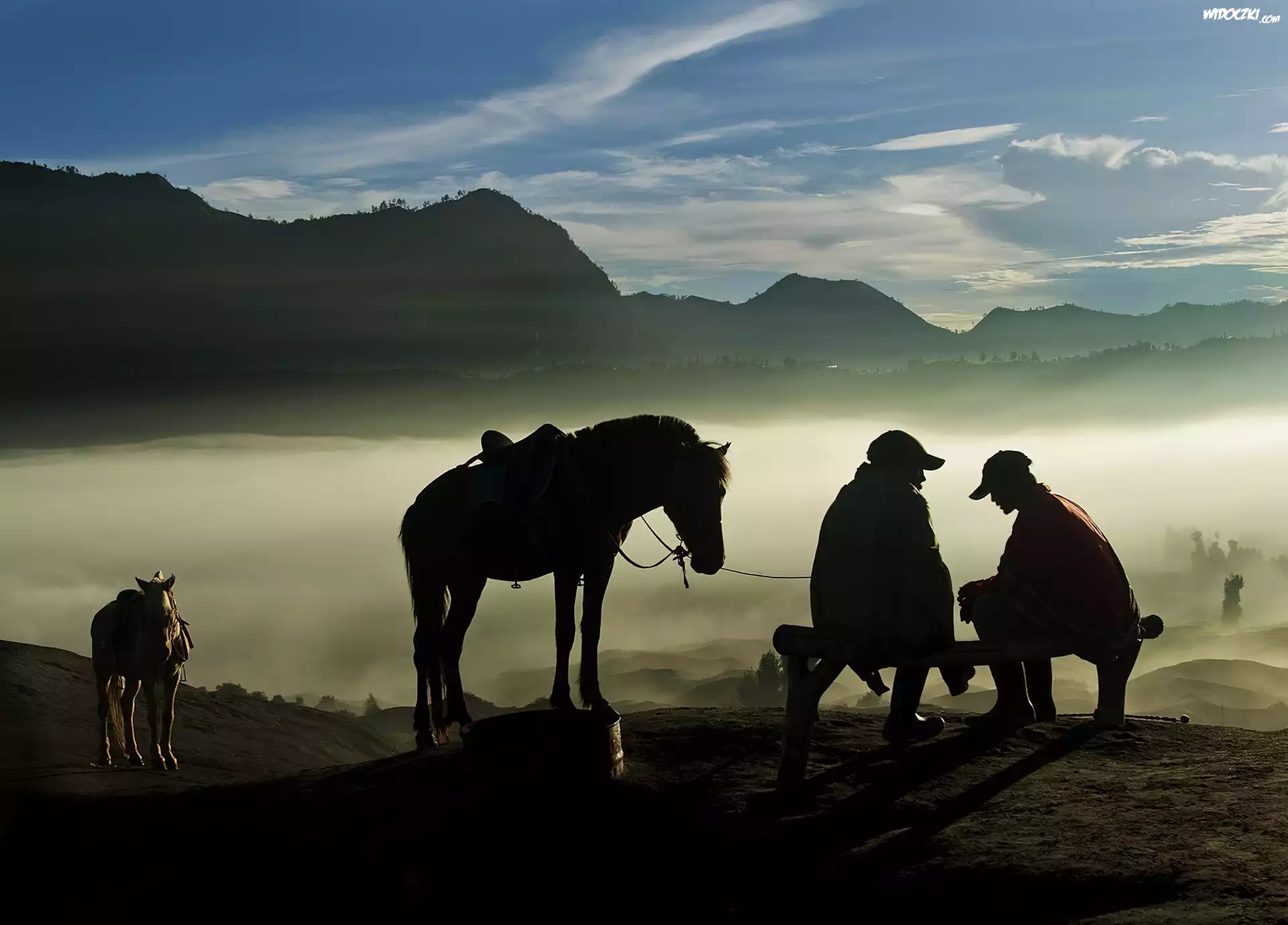 Góry, Mgła, Konie, Ludzie