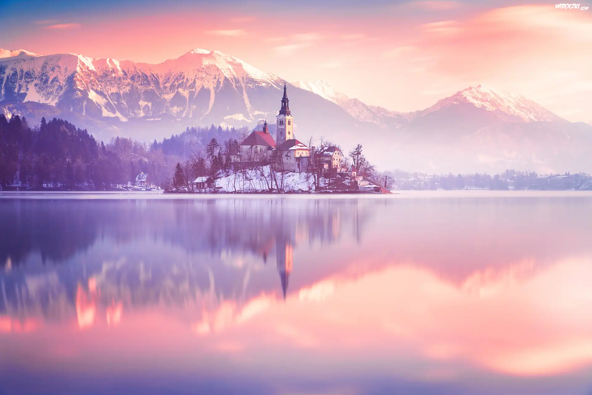 Zdjęcia, Słowenia, Góry, Wyspa Blejski Otok, Jezioro Bled, Kościół