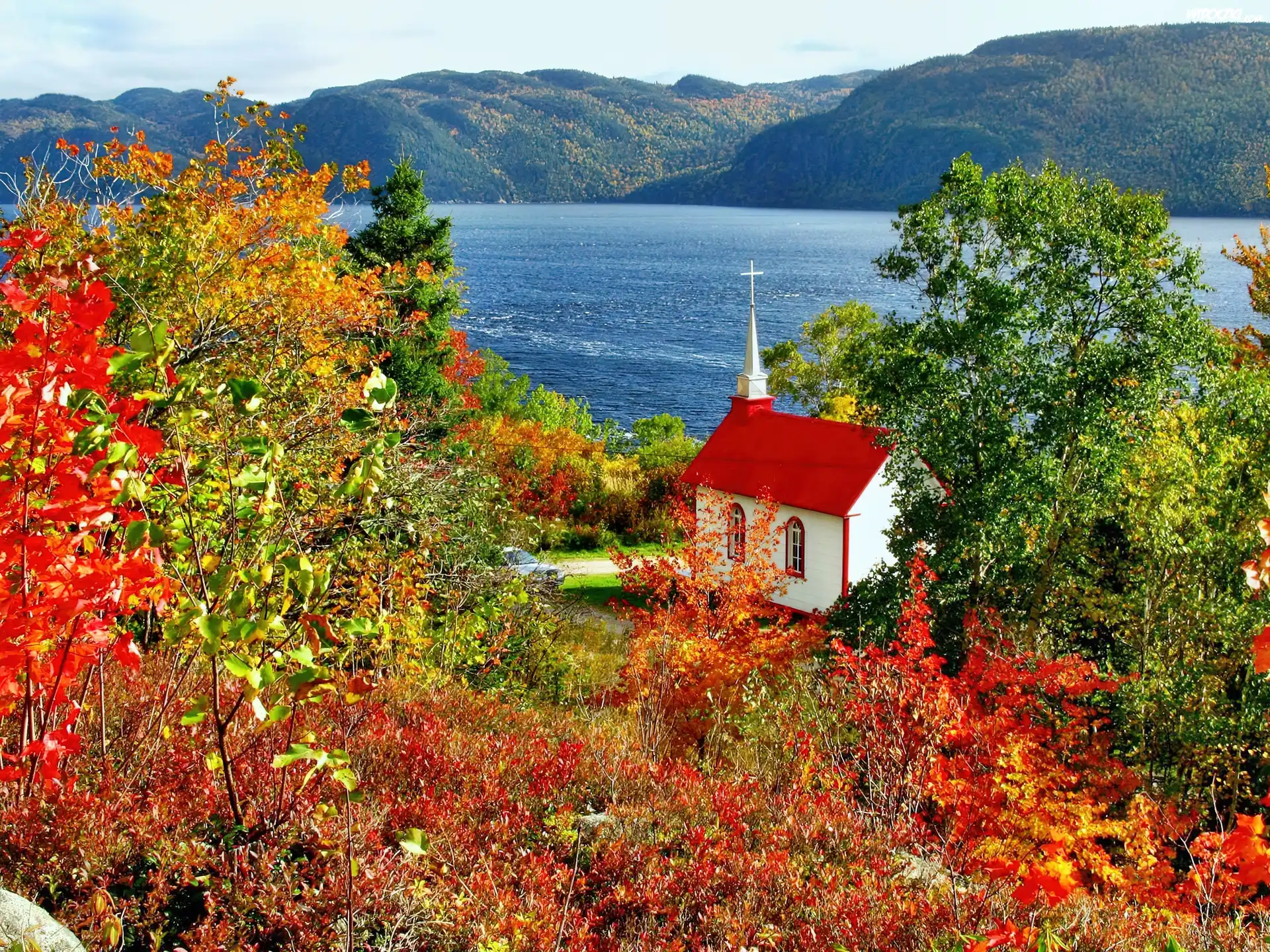 Góry, Jezioro, Kościółek, Jesień