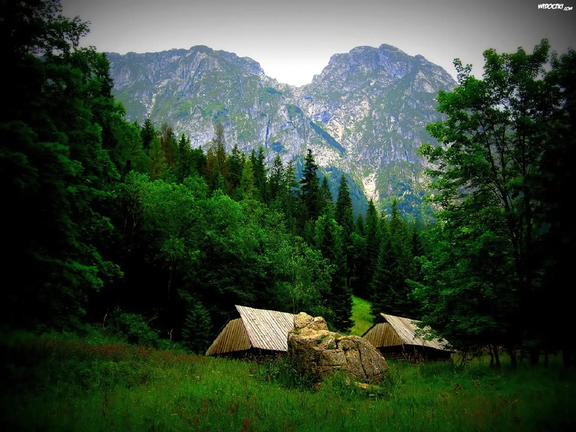 Zdjęcia, Krajobraz, Góry, Tatry, Dolina, Strążyska, Szałasy, Las