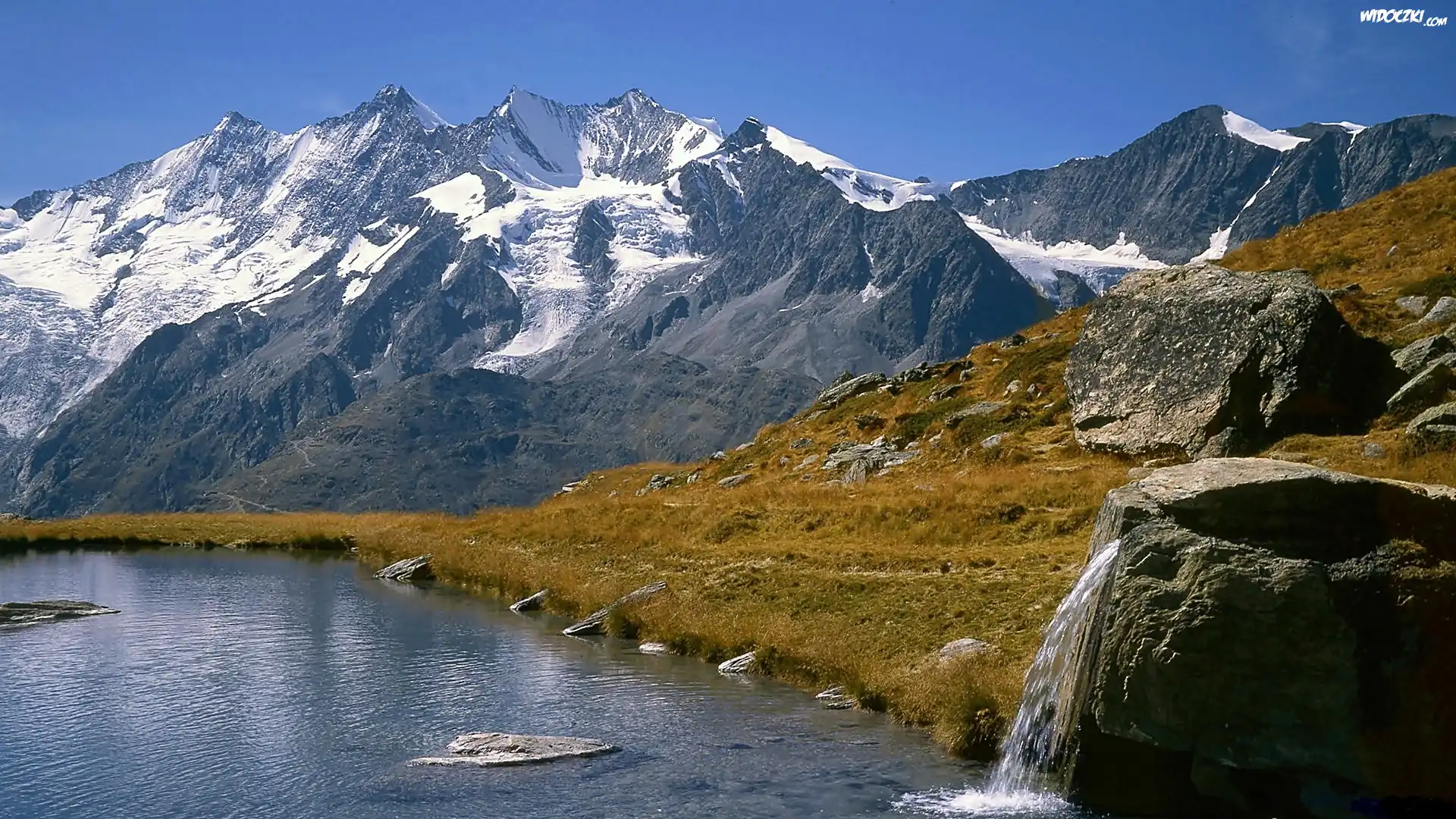 Zdjęcia, Góry, Masyw, Mischabel, Jezioro, Kreuzboden, Wodospad