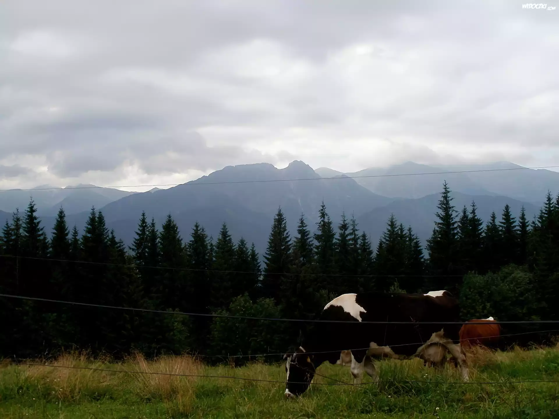 Zdjęcia, Góry, Latem, Krowa, Łąka