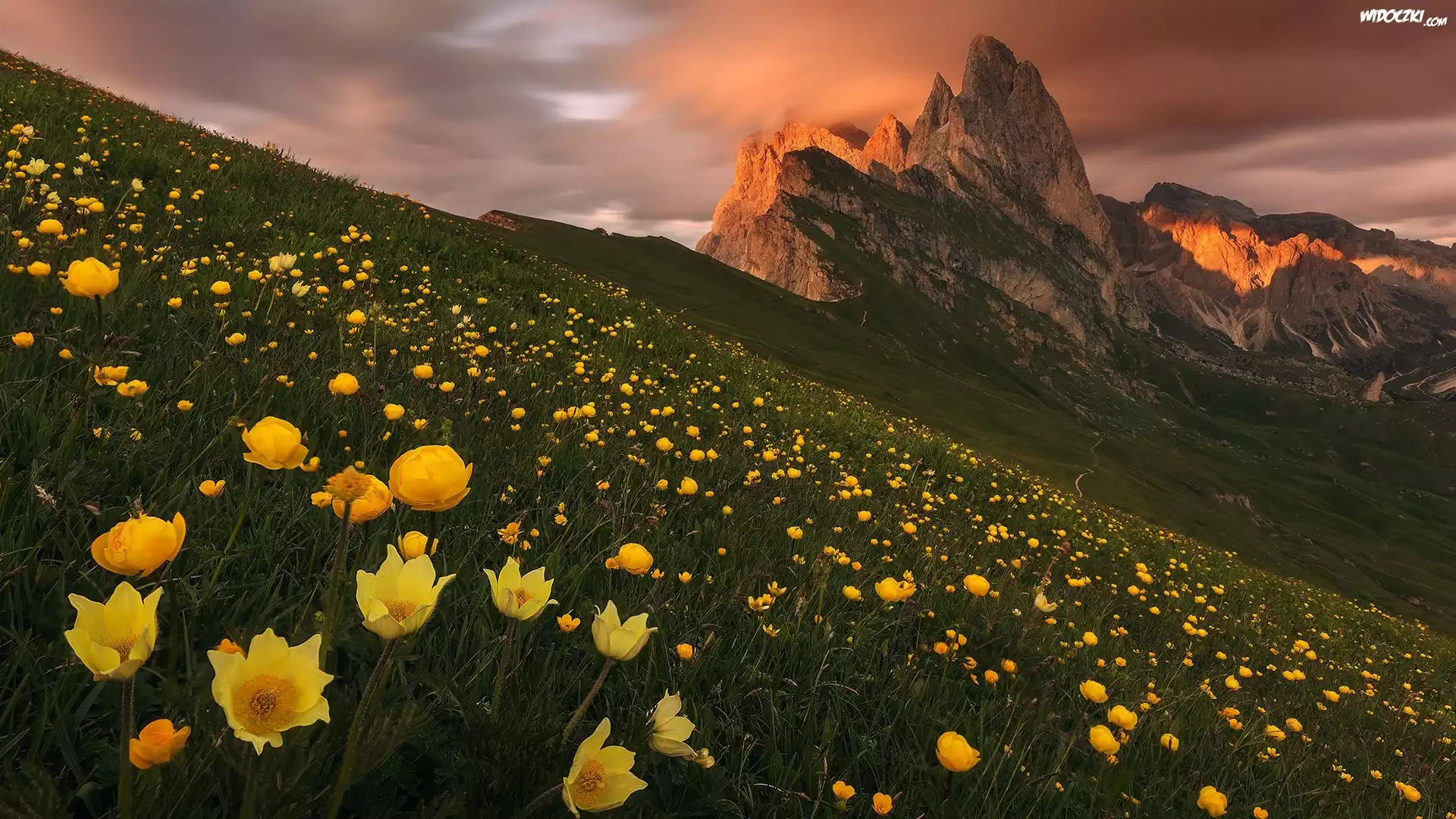 Zdjęcia, Góry, Szczyt, Łąka, Kwiaty, Chmury