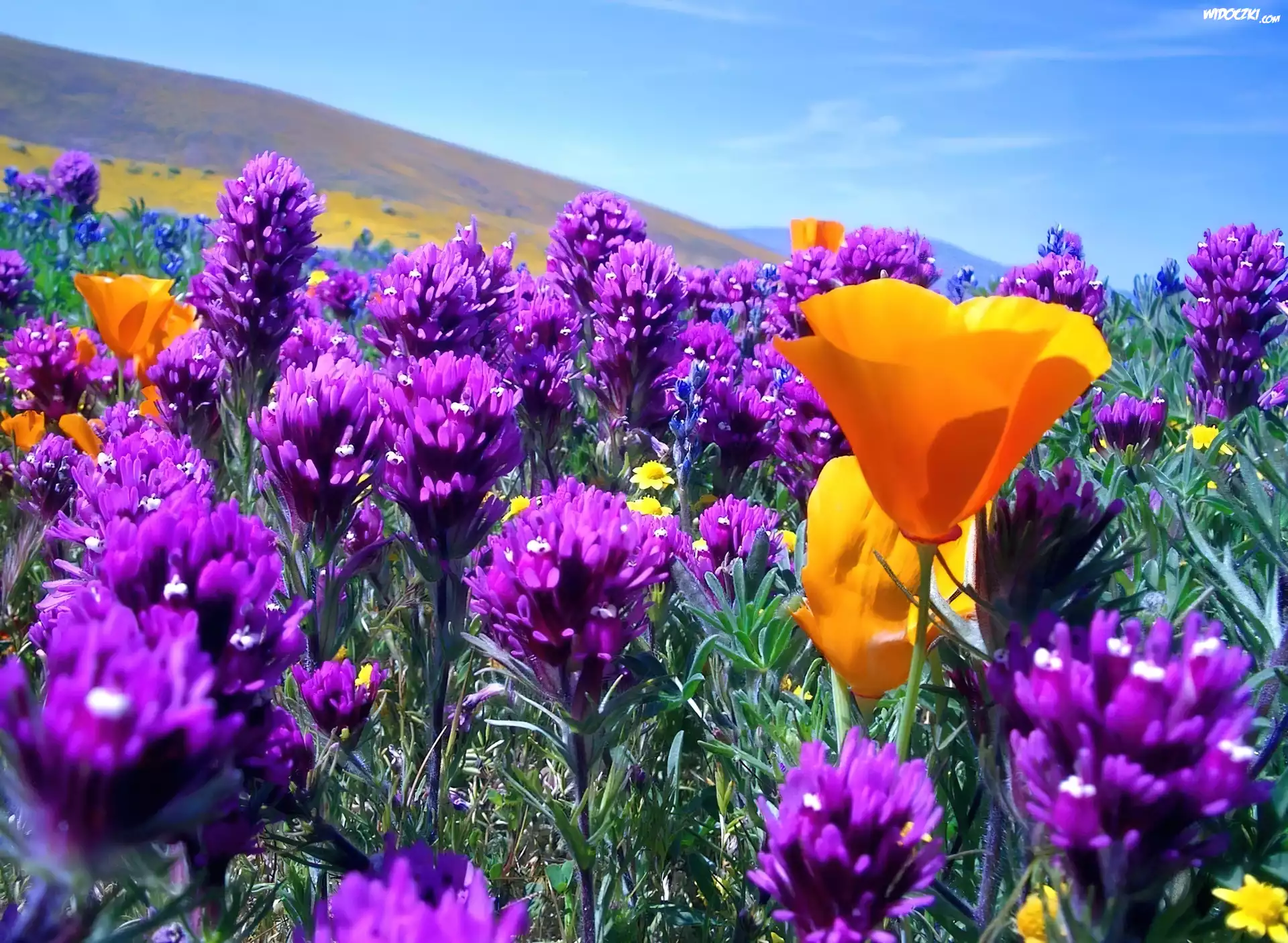 Zdjęcia, Łąka, Kwiaty, Góry, Wiosna