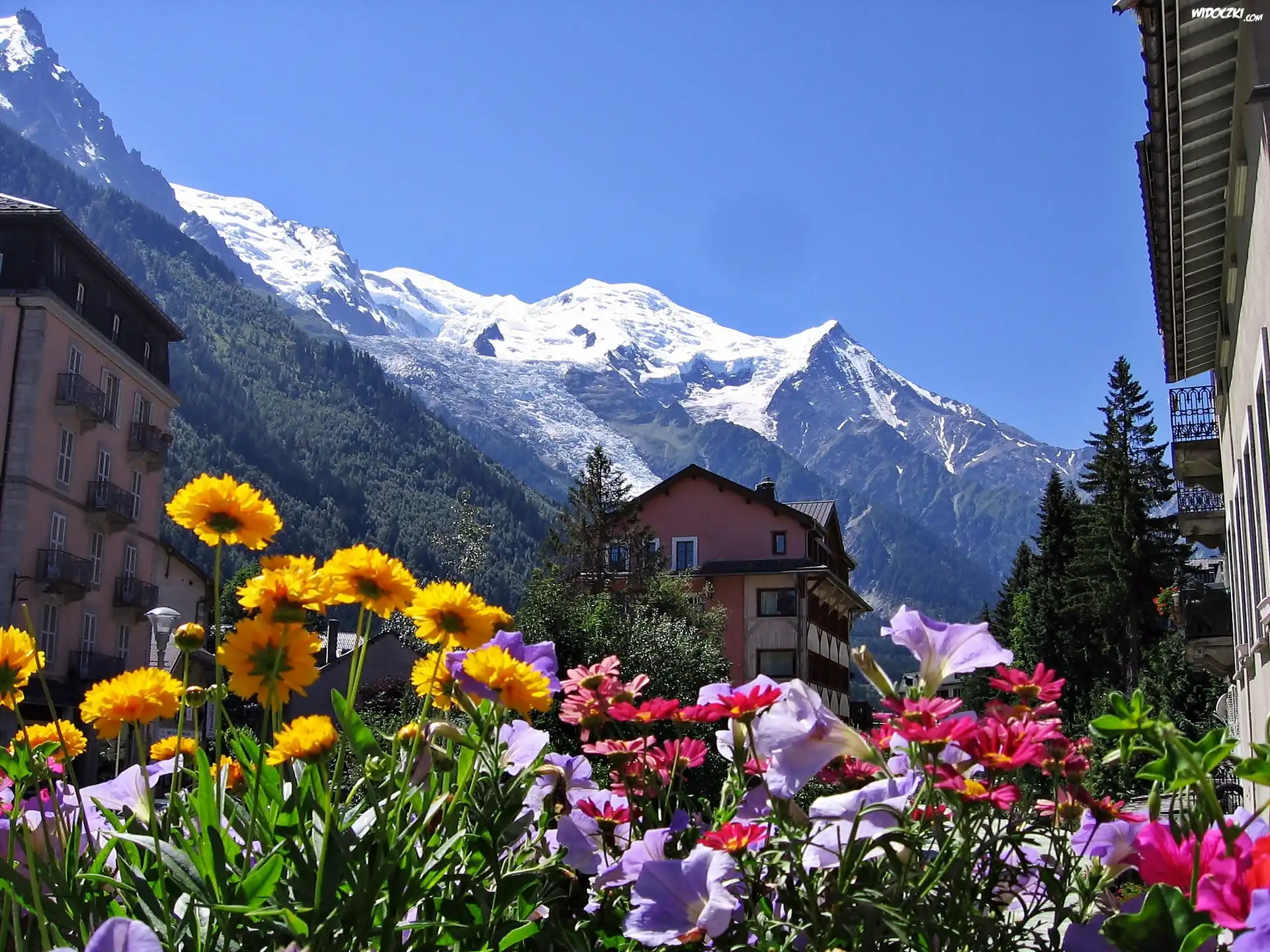 Zdjęcia, Góry, Domy, Kwiaty, Chamonix
