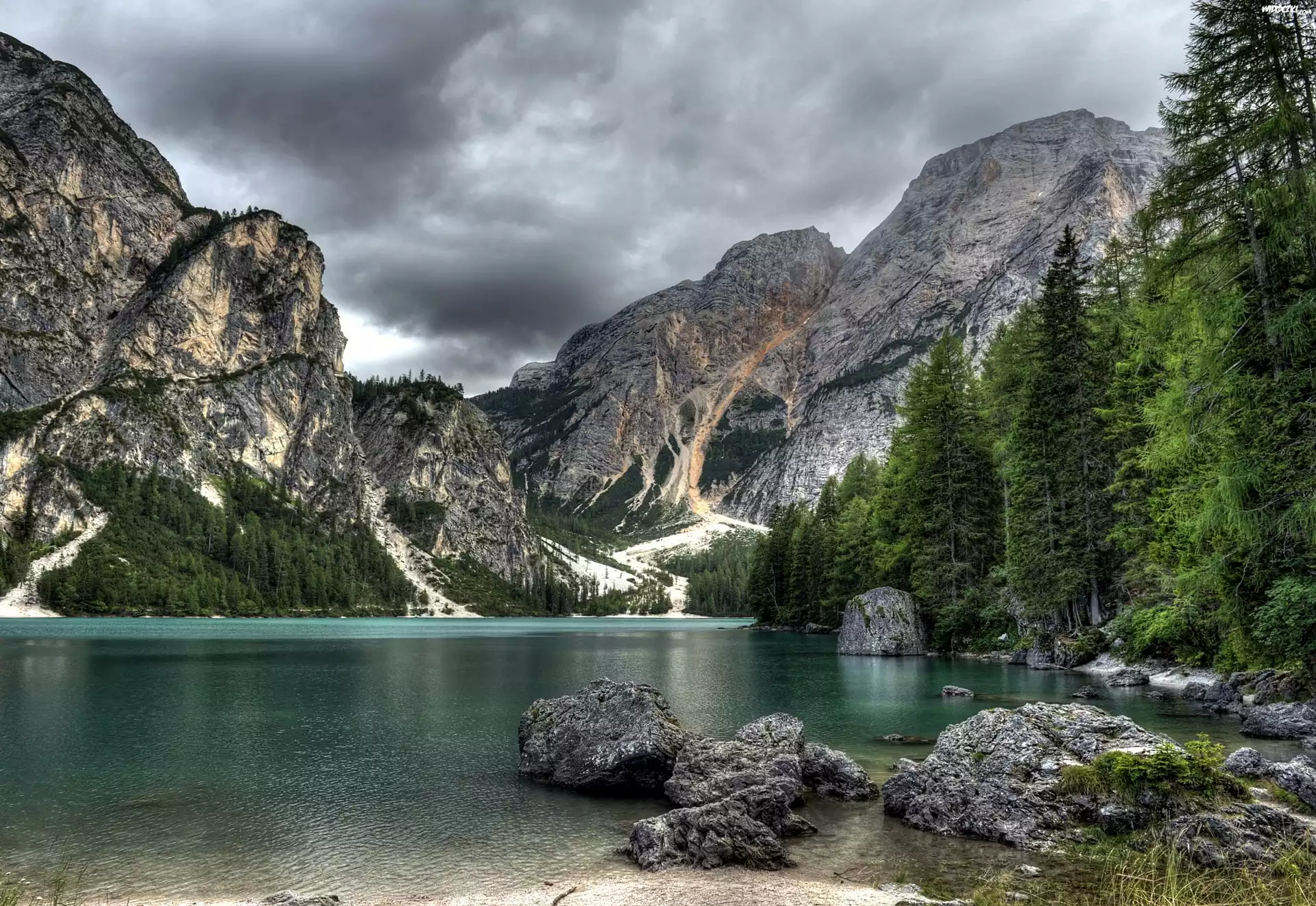 Zdjęcia, Góry, Chmury, Las, Jezioro