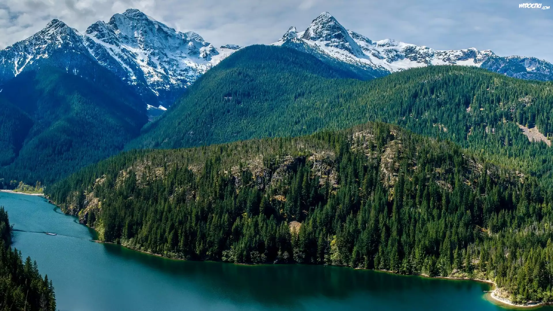 Jezioro Diablo Lake, Góry, Park Narodowy Północnych Gór Kaskadowych, Stan Waszyngton, Stany Zjednoczone, Lasy |