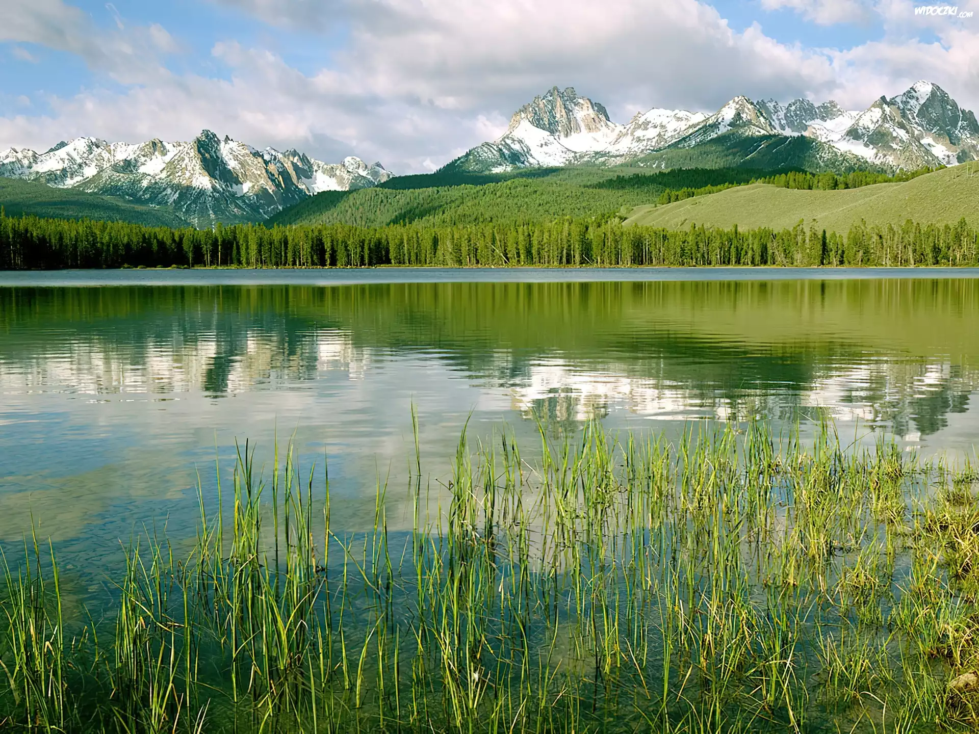 Zdjęcia, Góry, Jezioro, Las, Trawa