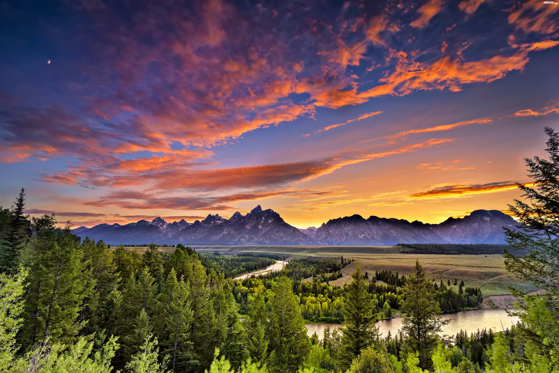 Zdjęcia, Góry, Rzeka, Las, Niebo