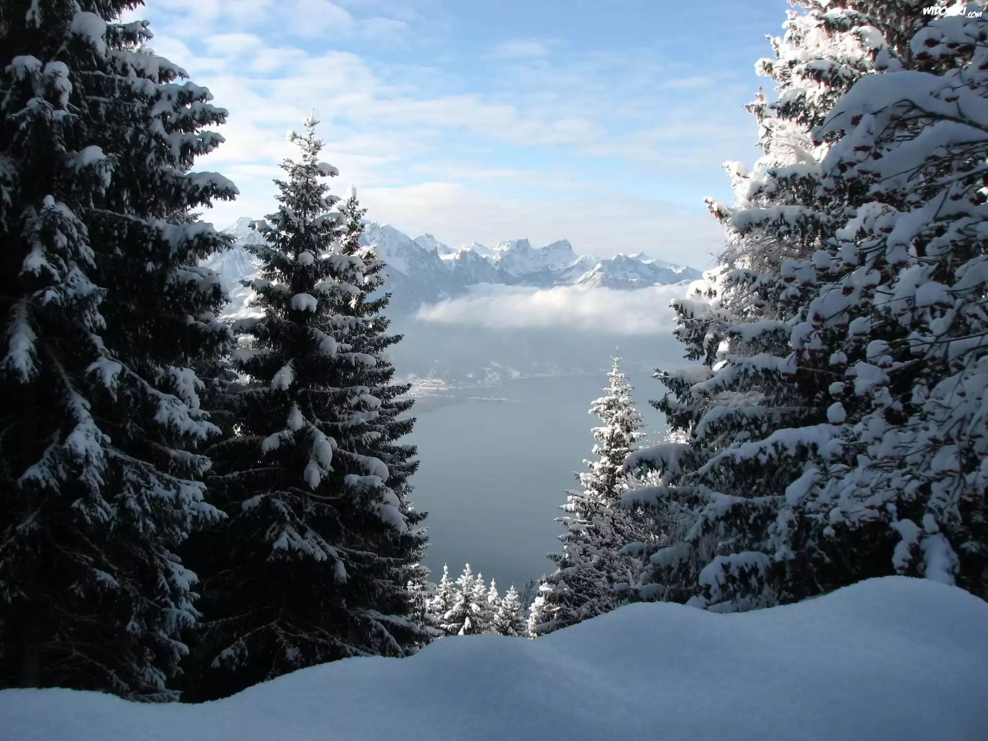 Zdjęcia, Góry, Rzeka, Las, Zima