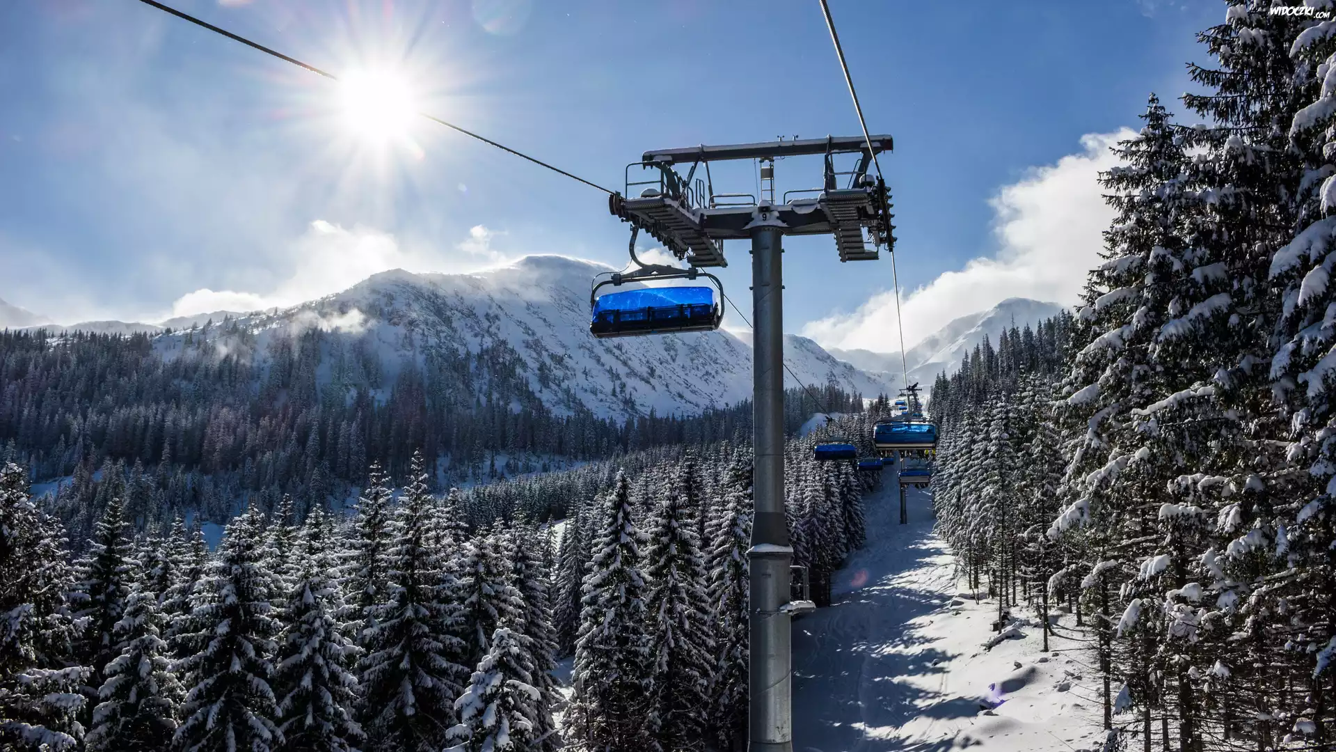 Zdjęcia, Zima, Góry, Śnieg, Wyciąg krzesełkowy, Ośnieżone, Drzewa, Las