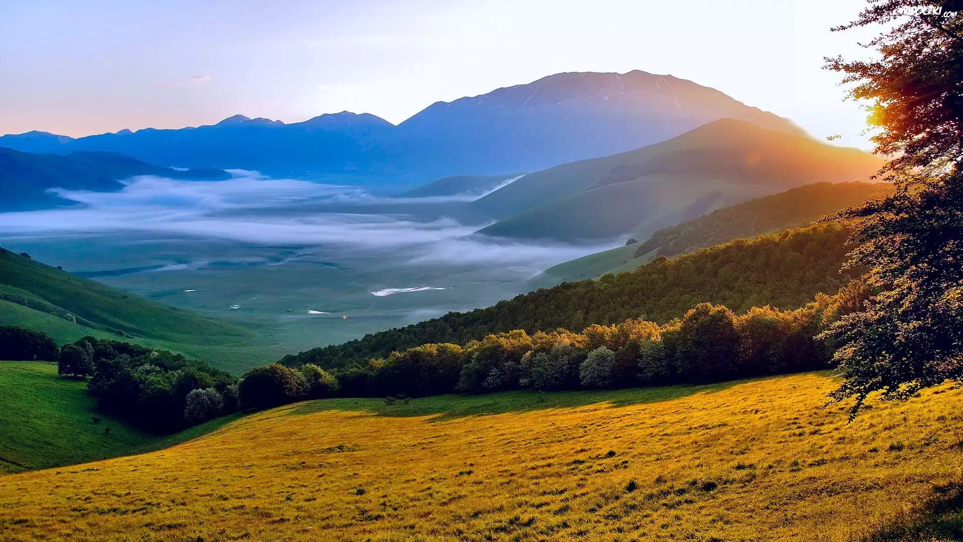 Zdjęcia, Góry, Łąki, Lasy, Mgła