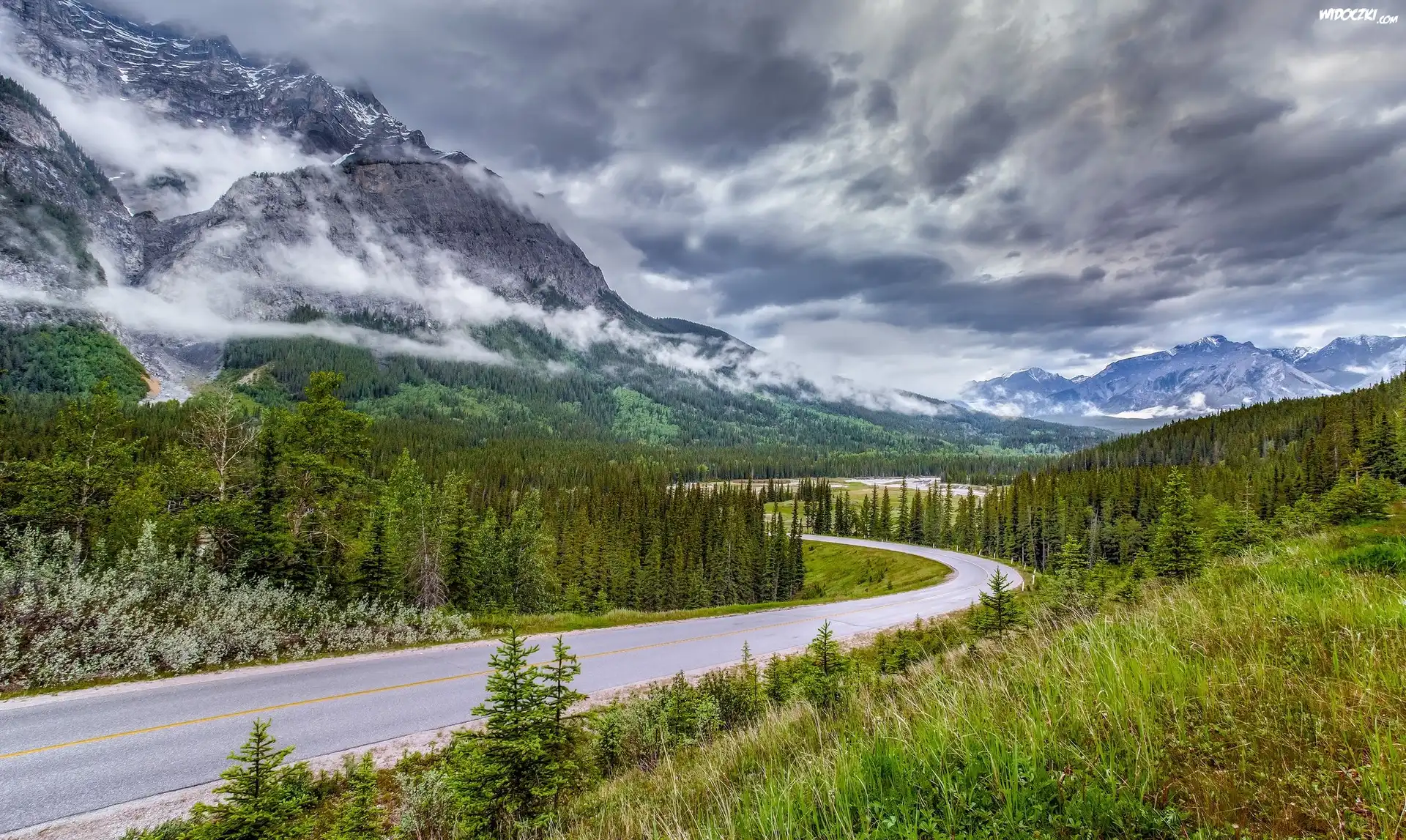 Góra, Jeziora Droga, Ciemne, Chmury, Drzewa ZachmurzonyZachód Słońca Zachód, Słońca, Chmury Góra, Jeziora Góra Góra Zatoka, Chmury, Zachód, Słońca Dziwna Góra Droga, Znak Zachód Słońca, Chmury, Drzewo Droga, Zakręt, Góry, Znak, Drogowy Góra, Chmury, Niebo Zielona, Droga, Drzewa