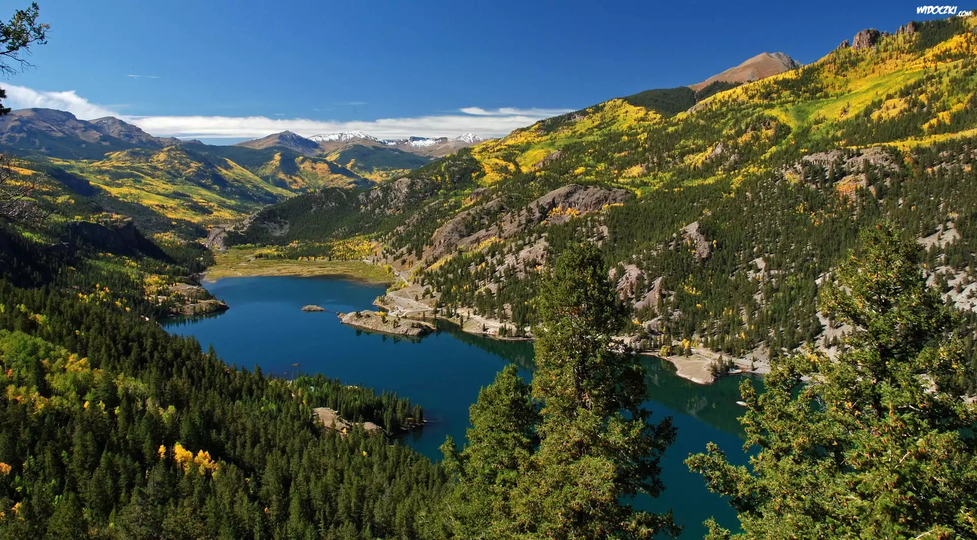 Zdjęcia, Góry, Jezioro, Lasy, Jesień