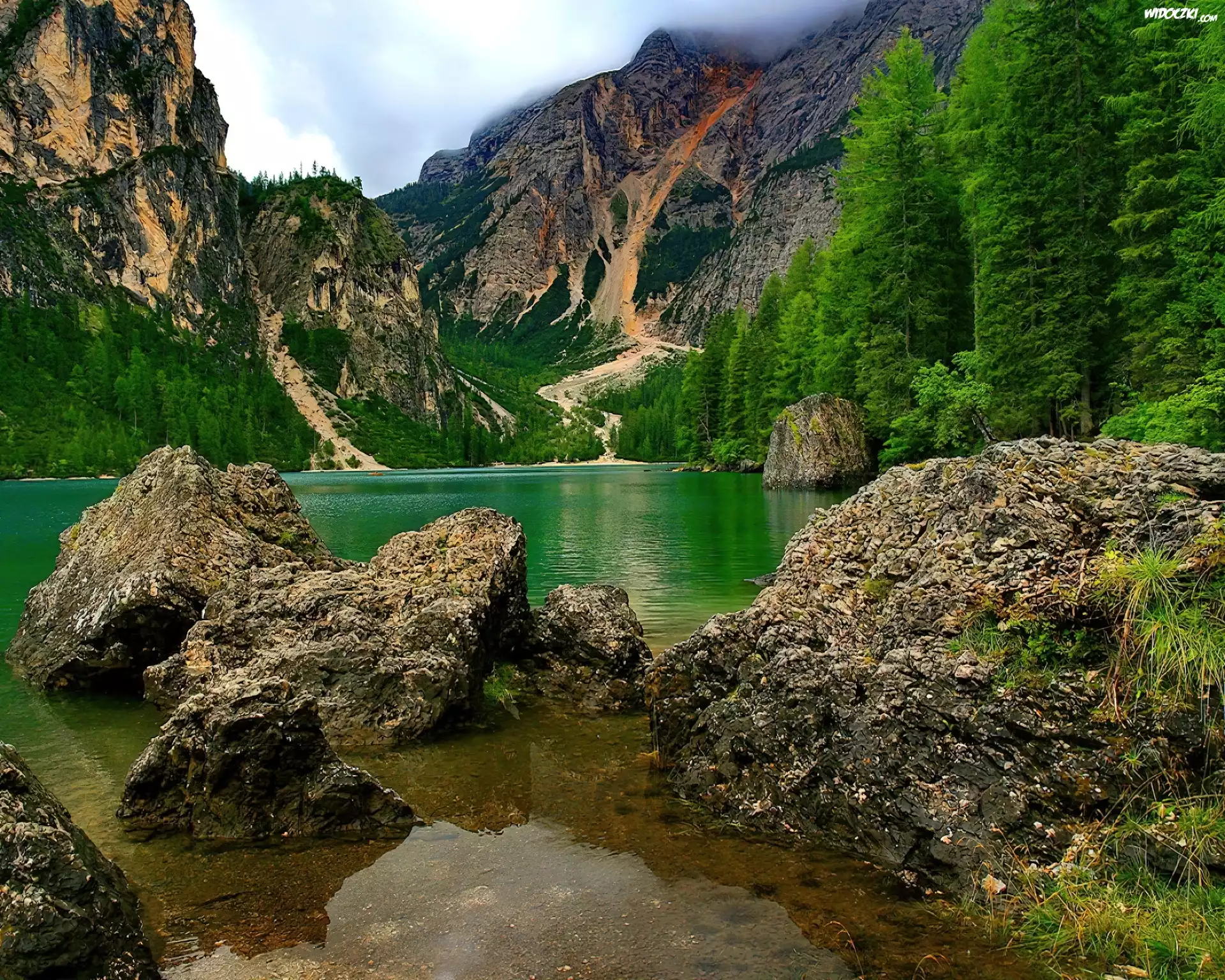 Zdjęcia, Góry, Jezioro, Lasy, Kamienie