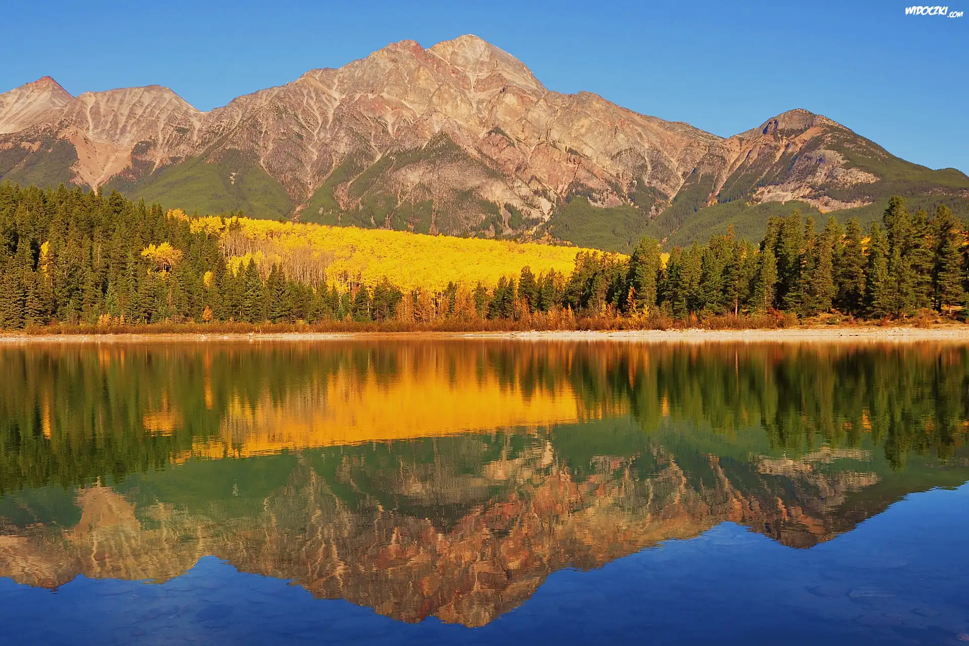 Góra Jezioro, Pomost, Pioruny Góra Góra Słońce, Woda, Jezioro Jesień, Las, Rzeka Las, Stare, Drzewa, Rzeka Jezioro, Mur, Drzewa, Domy Jesień, Las Piękne, Różowe, Niebo, Zamarznięte, Jezioro Widok, Lasu, Lot, Ptaka Góry, Odbicie, Jezioro Góra, Chmury Góra, Łoś
