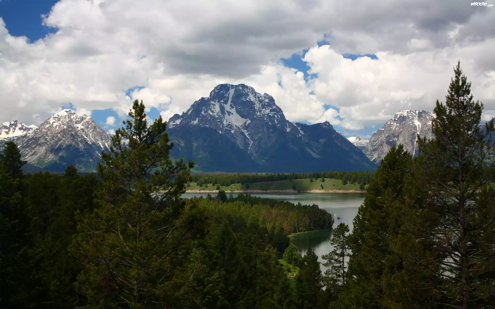 Zdjęcia, Góry, Rzeka, Lasy, Chmury