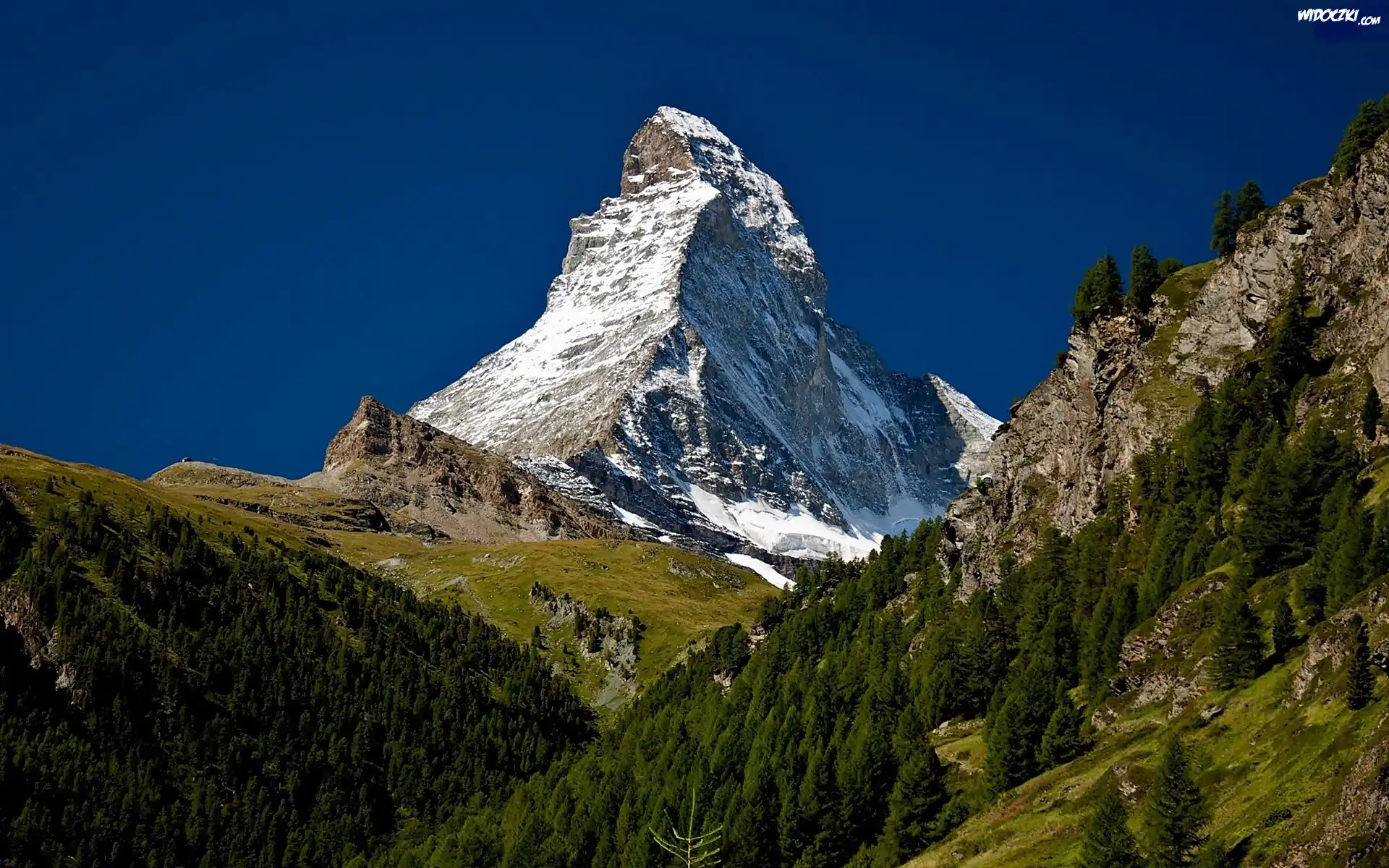 Zdjęcia, Góry, Alpy, Szczyt, Matternhorn, Lasy, Łąki