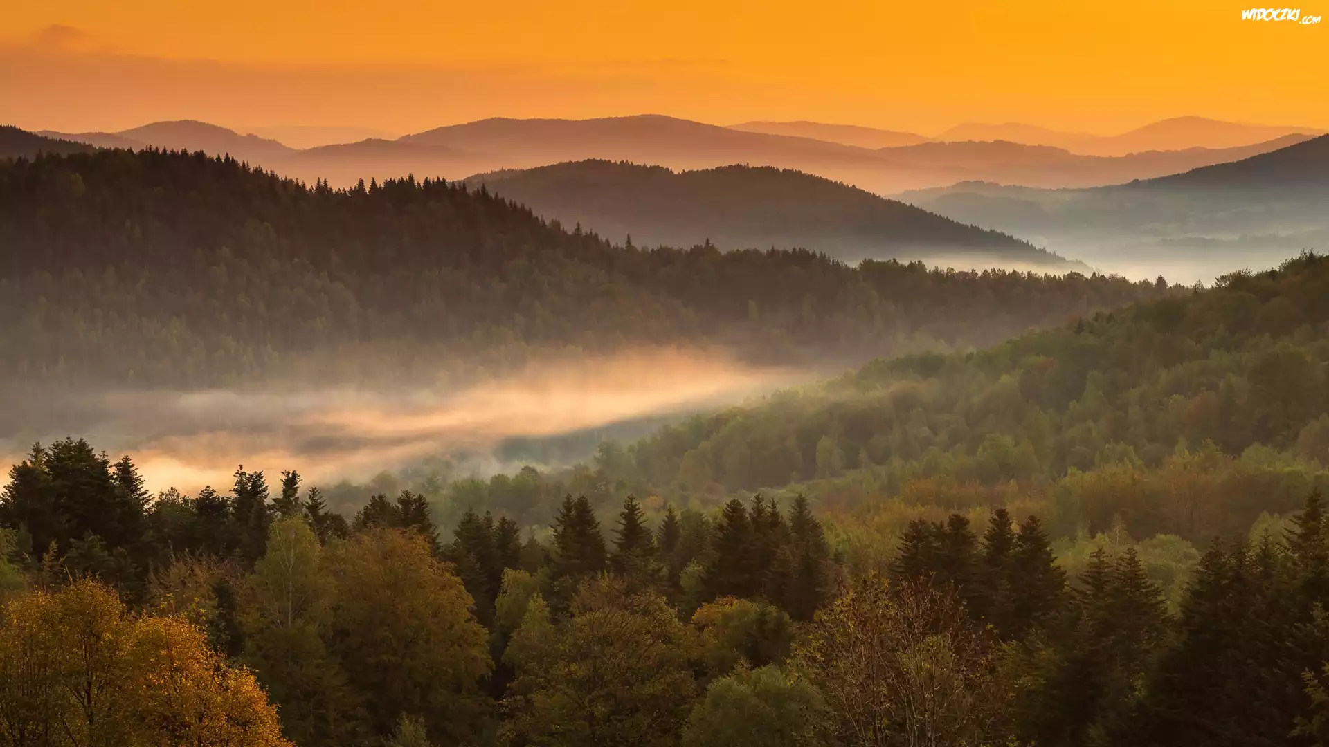 Zdjęcia, Góry, Wzgórza, Lasy, Mgła
