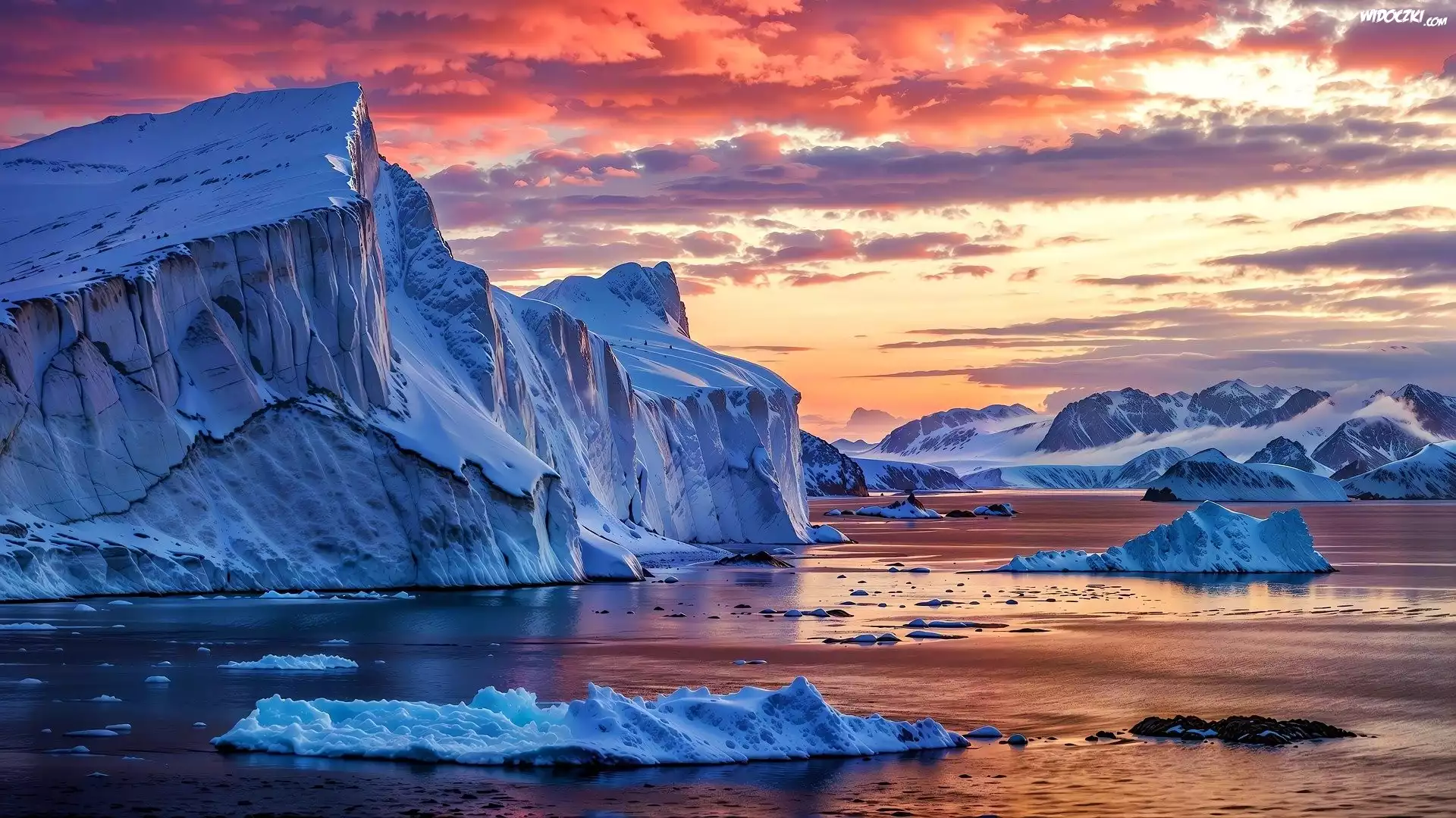 Zdjęcia, Morze, Góry lodowe, Kolorowe, Niebo