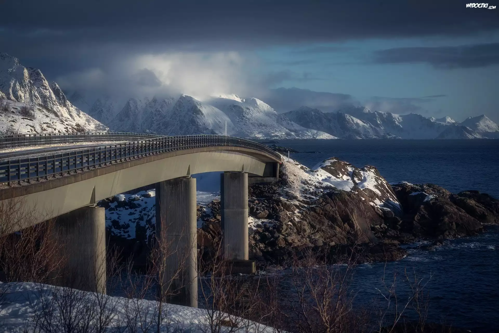 Zdjęcia, Most, Góry, Lofoty, Norwegia, Zima