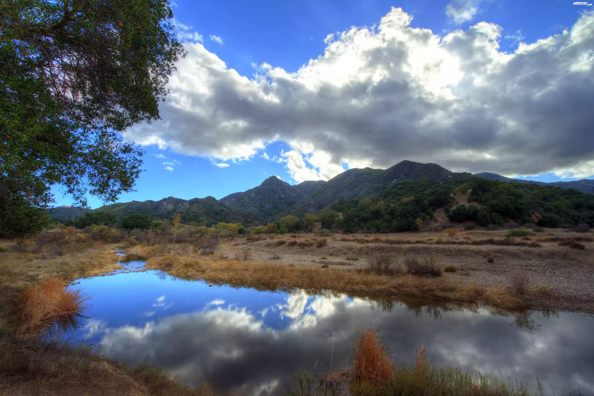 Zdjęcia, Góry, Chmury, Staw, Malibu, Kalifornia