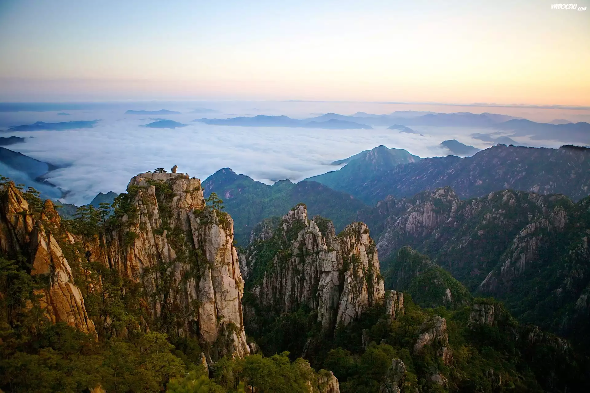 Zdjęcia, Góry, Skały, Mgła, Drzewa