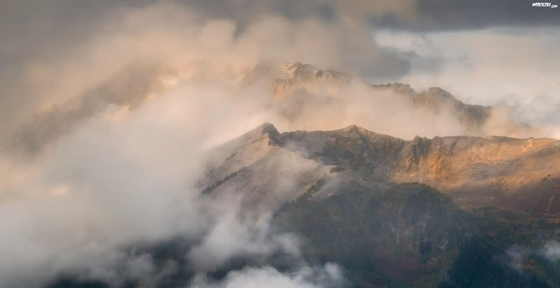 Zdjęcia, Góry, Szczyty, Mgła, Chmury