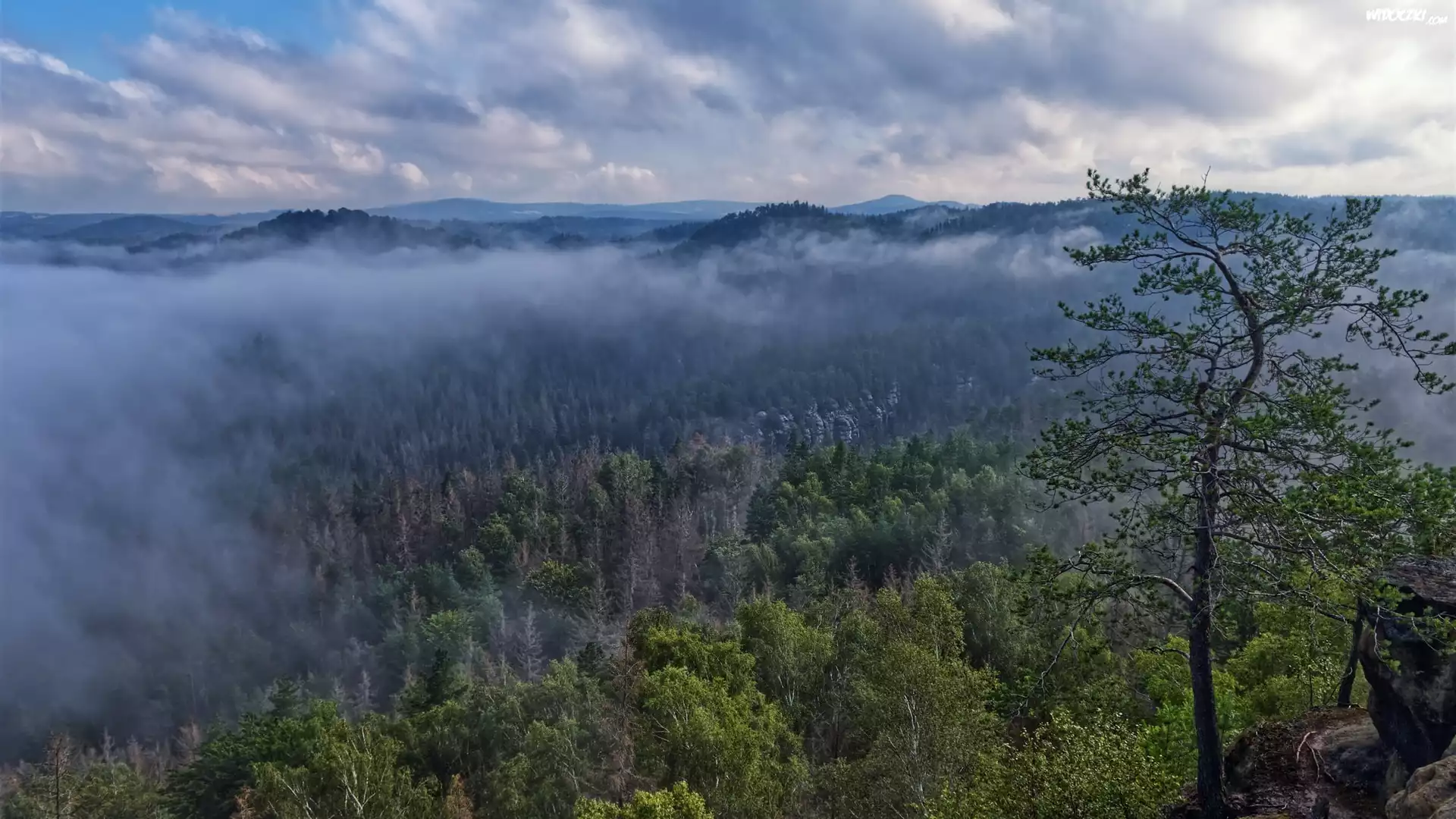 Zdjęcia, Góry, Drzewa, Wierzchołki, Mgła, Chmury