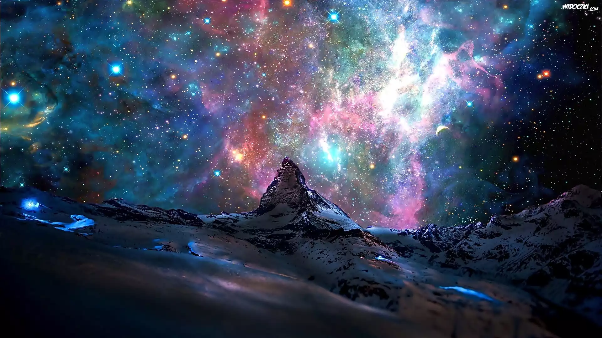 Zdjęcia, Góry, Alpy, Szczyt Matterhorn, Mgławica, Gwiazdy