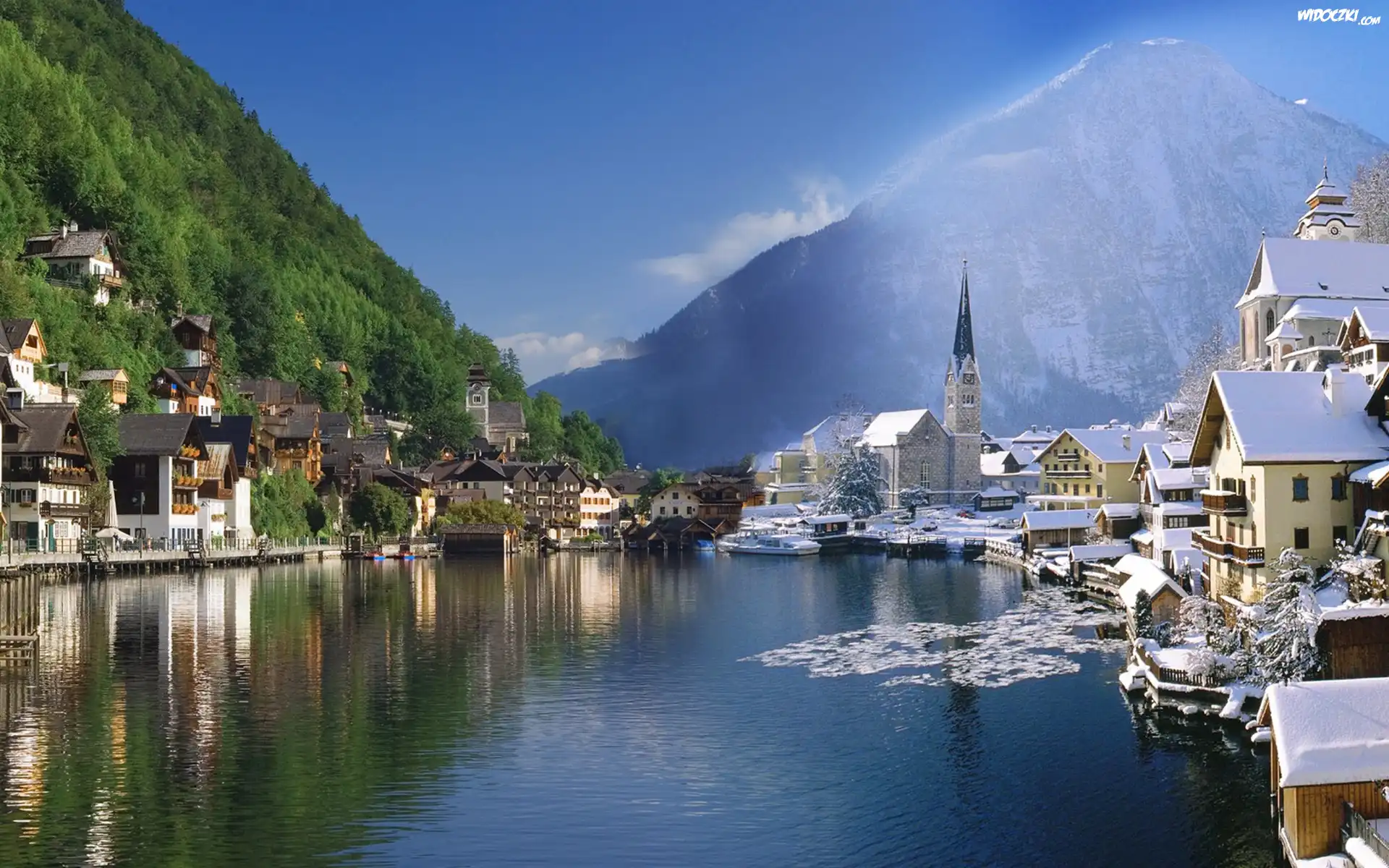 Zdjęcia, Góry, Jezioro, Miasteczko, Zima