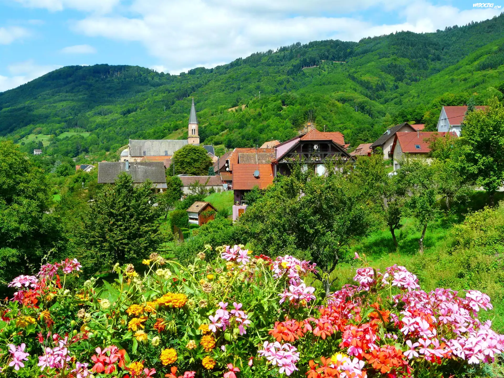 Zdjęcia, Miasteczko, Góry, Kwiaty