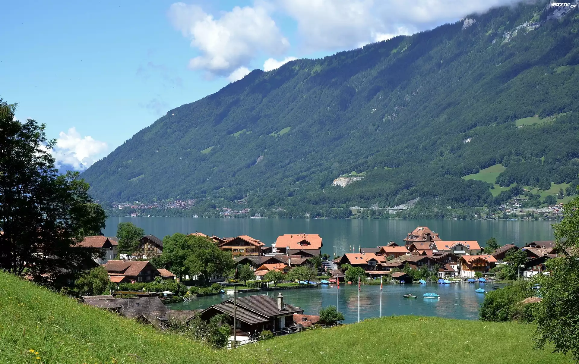 Zdjęcia, Góry, Lasy, Jezioro, Miasto, Iseltwald