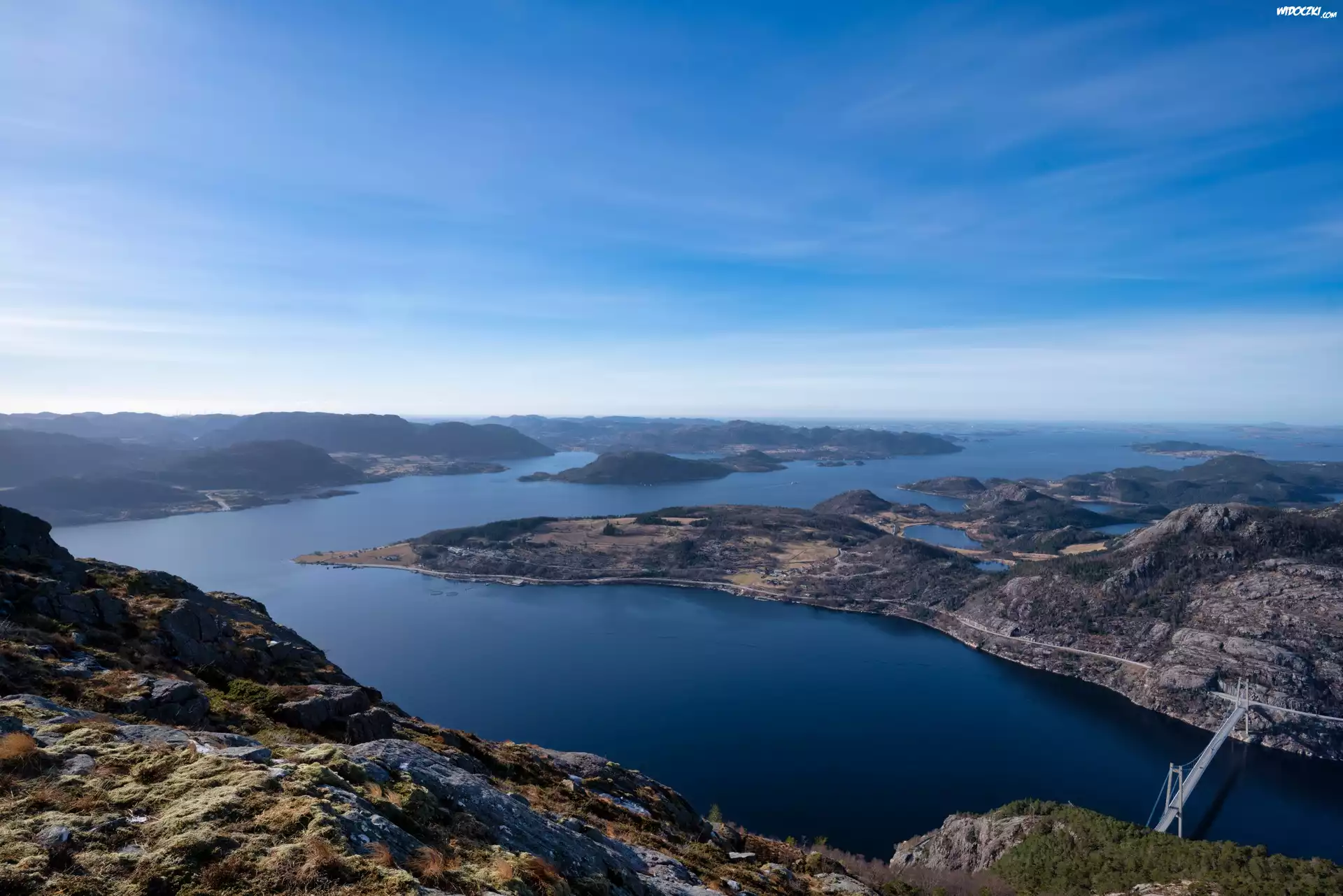 Zdjęcia, Norwegia, Rogaland, Gmina Forsand, Most, Lysefjord Bridge, Fiord, Lysefjorden, Góry