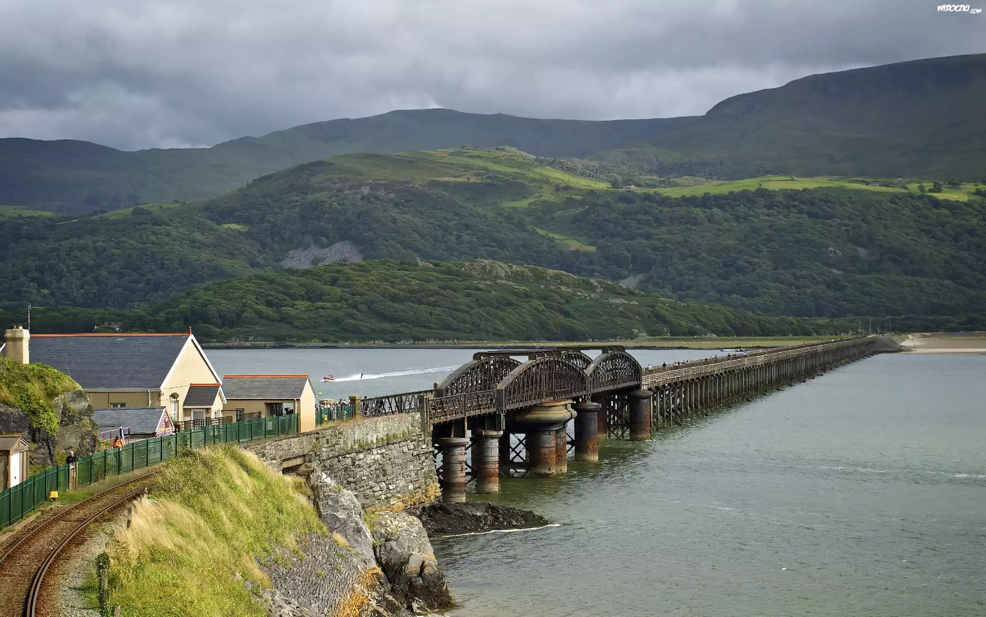 Góry, Lasy, Rzeka, Domy, Most, Kolejowy
