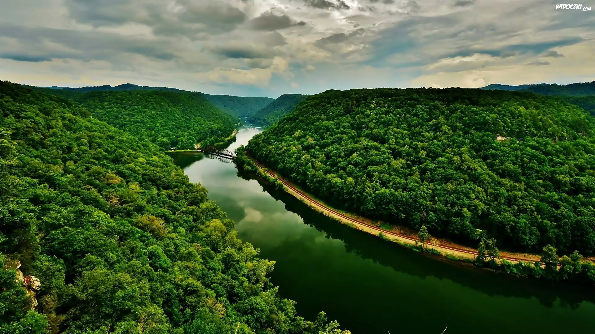 Góry, Lasy, Rzeka, Droga, Most, Wzgórza