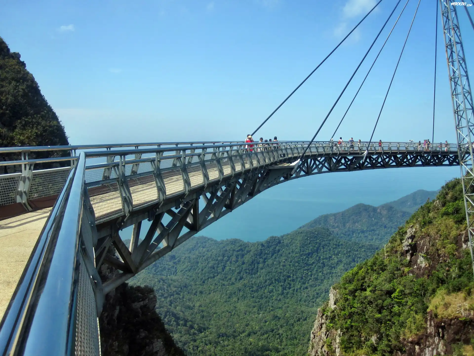Zdjęcia, Góry, Wiszący, Most, Turyści