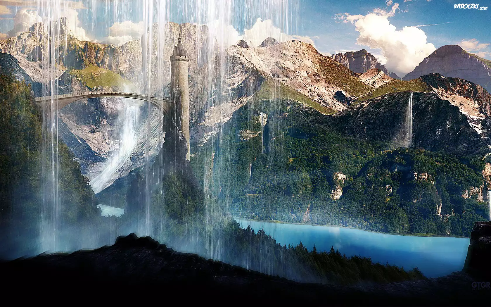 Zdjęcia, Góry, Wodospady, Most, Wieża