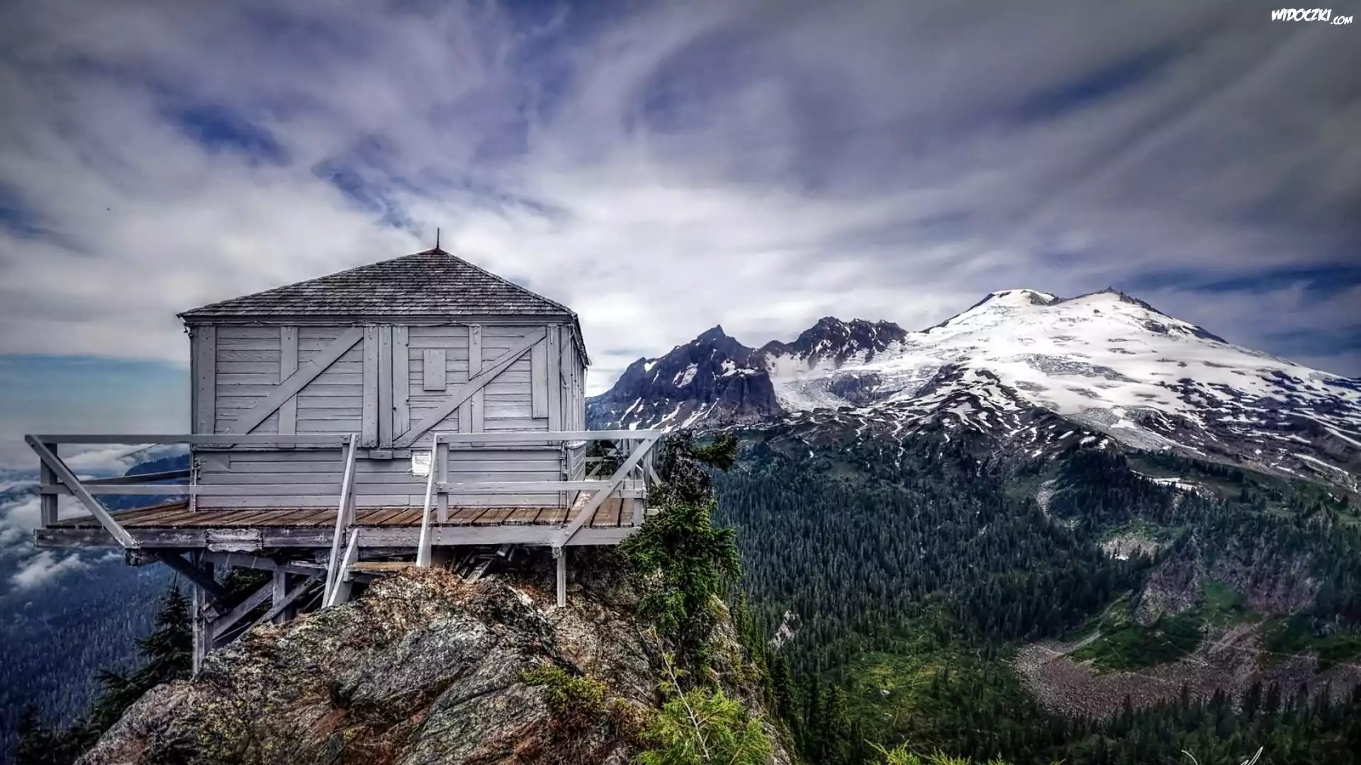Zdjęcia, Góry, Lasy, Drewniany, Domek, Na Platformie